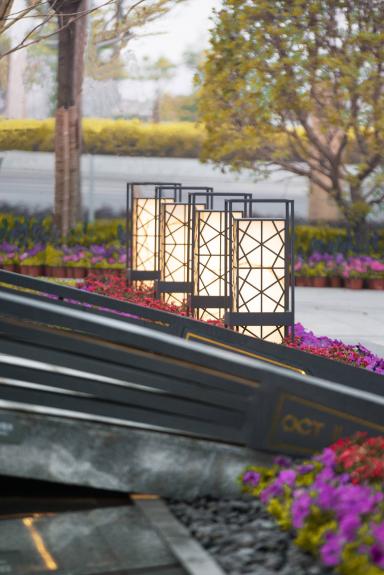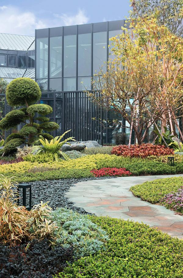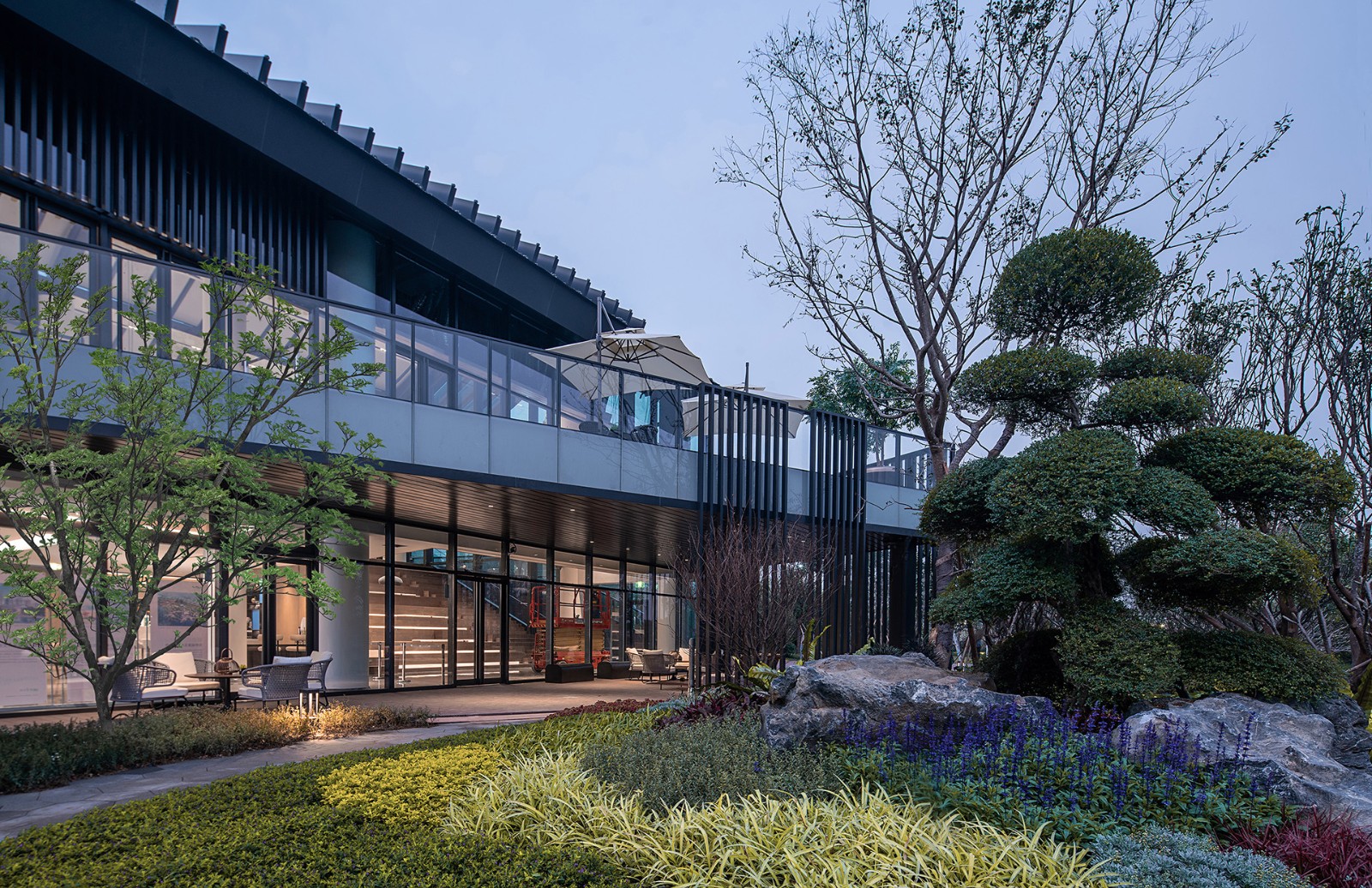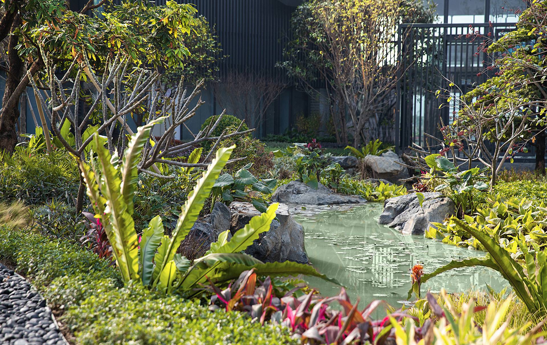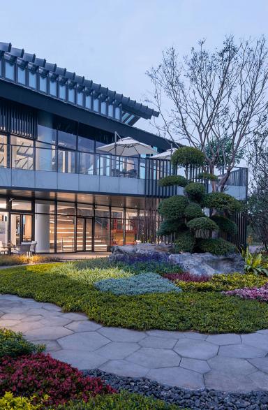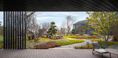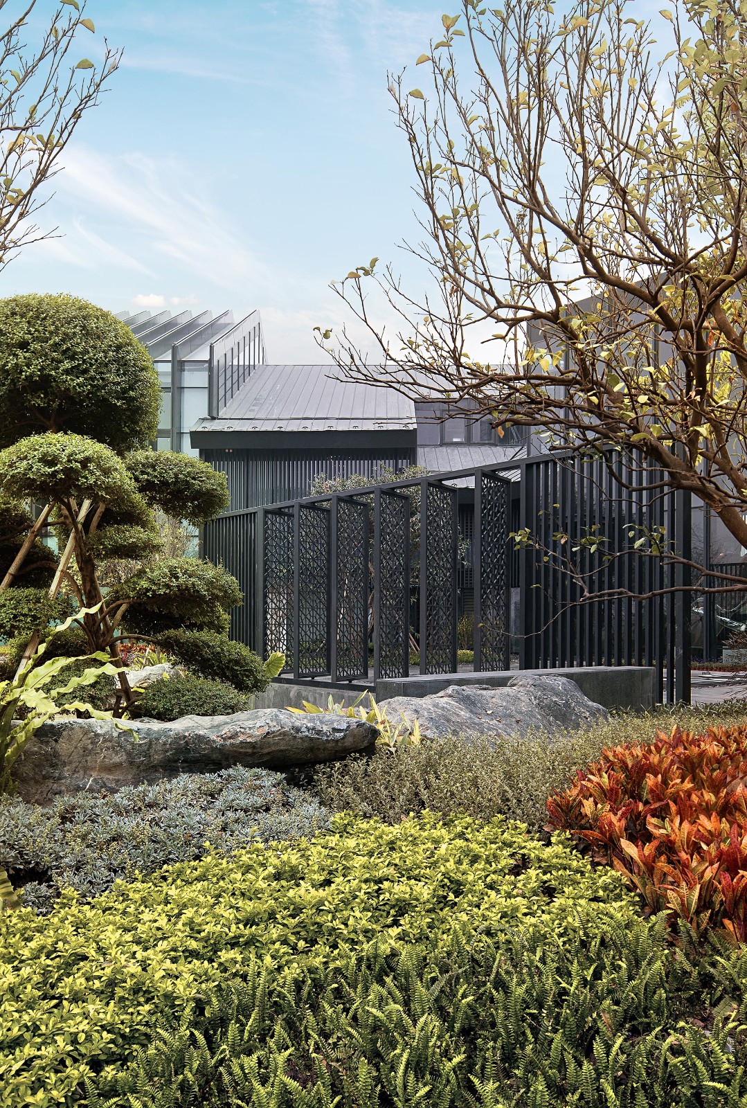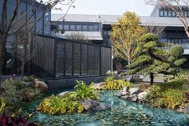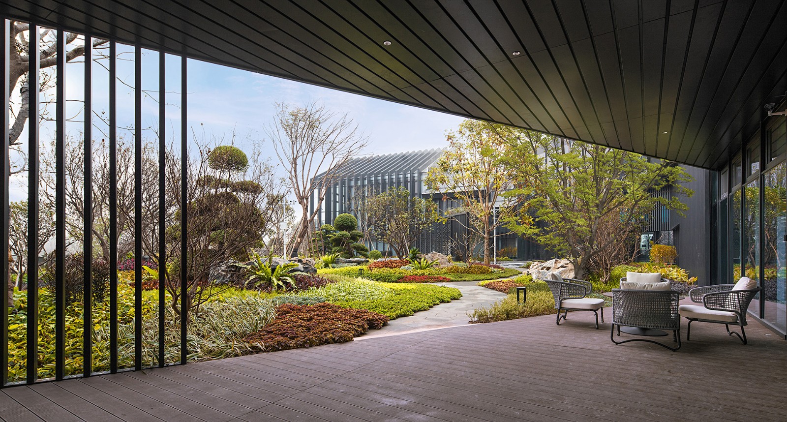 自然景石與植物相組合,巧妙運(yùn)用借景、框景等造園手法,讓室內(nèi)空間向戶(hù)外延伸,加大景深的作用,令景觀更具體驗(yàn)性與真實(shí)感。
