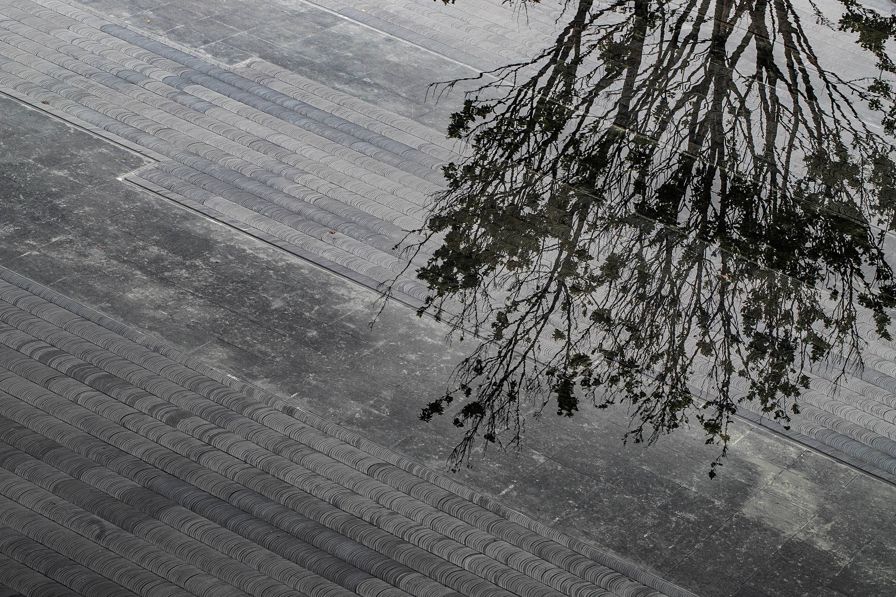 肇慶古名端州,以端硯著稱(chēng),入口水景以此為題眼,表達(dá)中國(guó)傳統(tǒng)文人園林的雅致與書(shū)香氣息,當(dāng)清晨有少許風(fēng)吹起絲絲微波,倒影于水面蕩漾,似墨香飄逸,若時(shí)空交錯(cuò)。