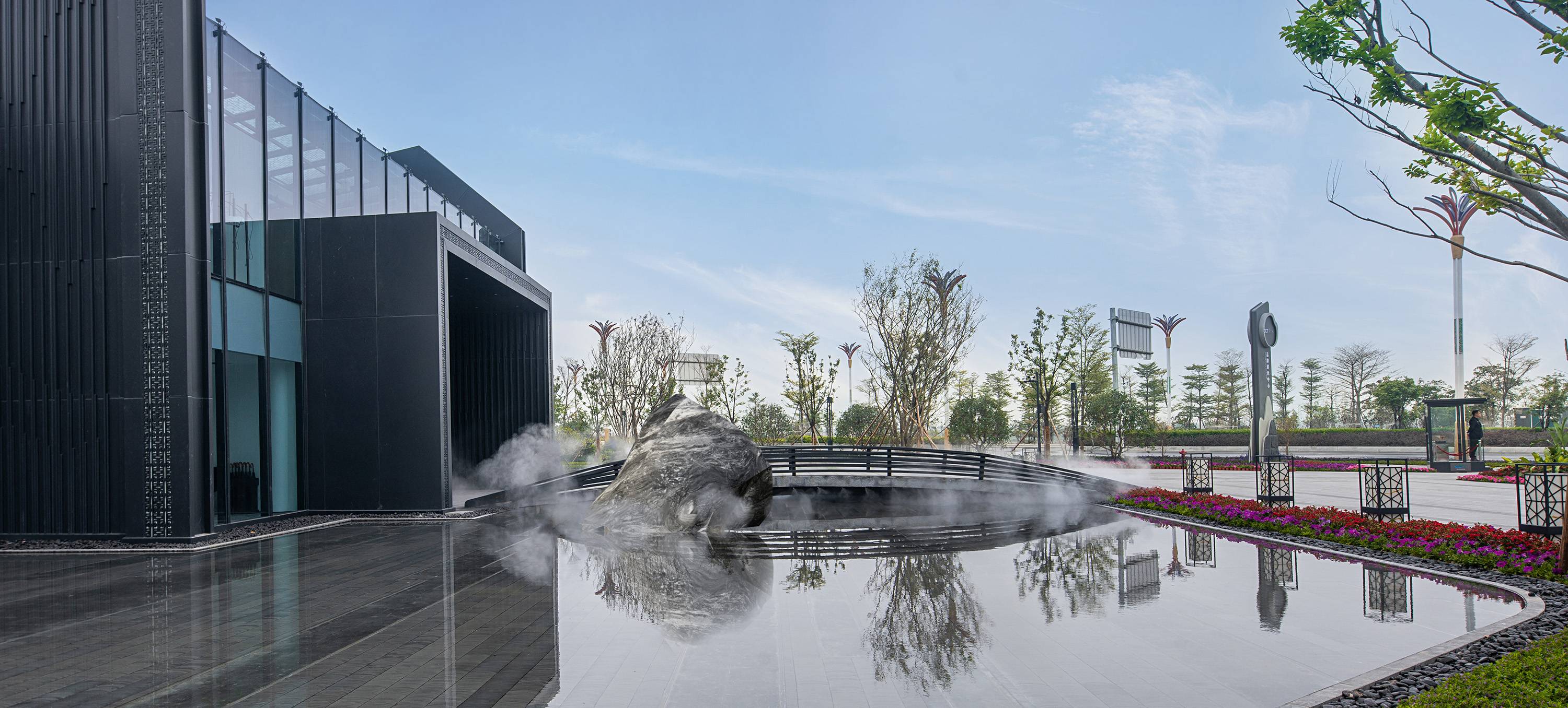 嶺南園林崇尚自然之道的樸素自然觀,道法自然山水,原天地之美,項(xiàng)目設(shè)計(jì)遵循嶺南園林清新曠達(dá)、布局平易開(kāi)朗、輕盈暢朗的特色,提取肇慶自然奇觀、山水肌理的片段語(yǔ)言,于水墨山石間再現(xiàn)嶺南山水畫(huà)卷,引用對(duì)景,借景等造園手法, 結(jié)合現(xiàn)代的工藝,營(yíng)造既具有嶺南園林特色又有現(xiàn)代園林氣質(zhì)的意境。