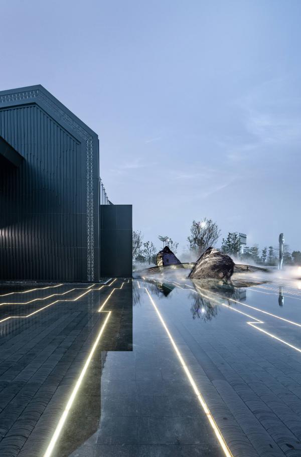 由鼎湖山的地貌肌理為設(shè)計(jì)靈感,將山地褶皺、斷裂等元素進(jìn)行藝術(shù)加工,營(yíng)造萬(wàn)壑爭(zhēng)流的景觀,令來(lái)者于此放情山水,陶融自然。