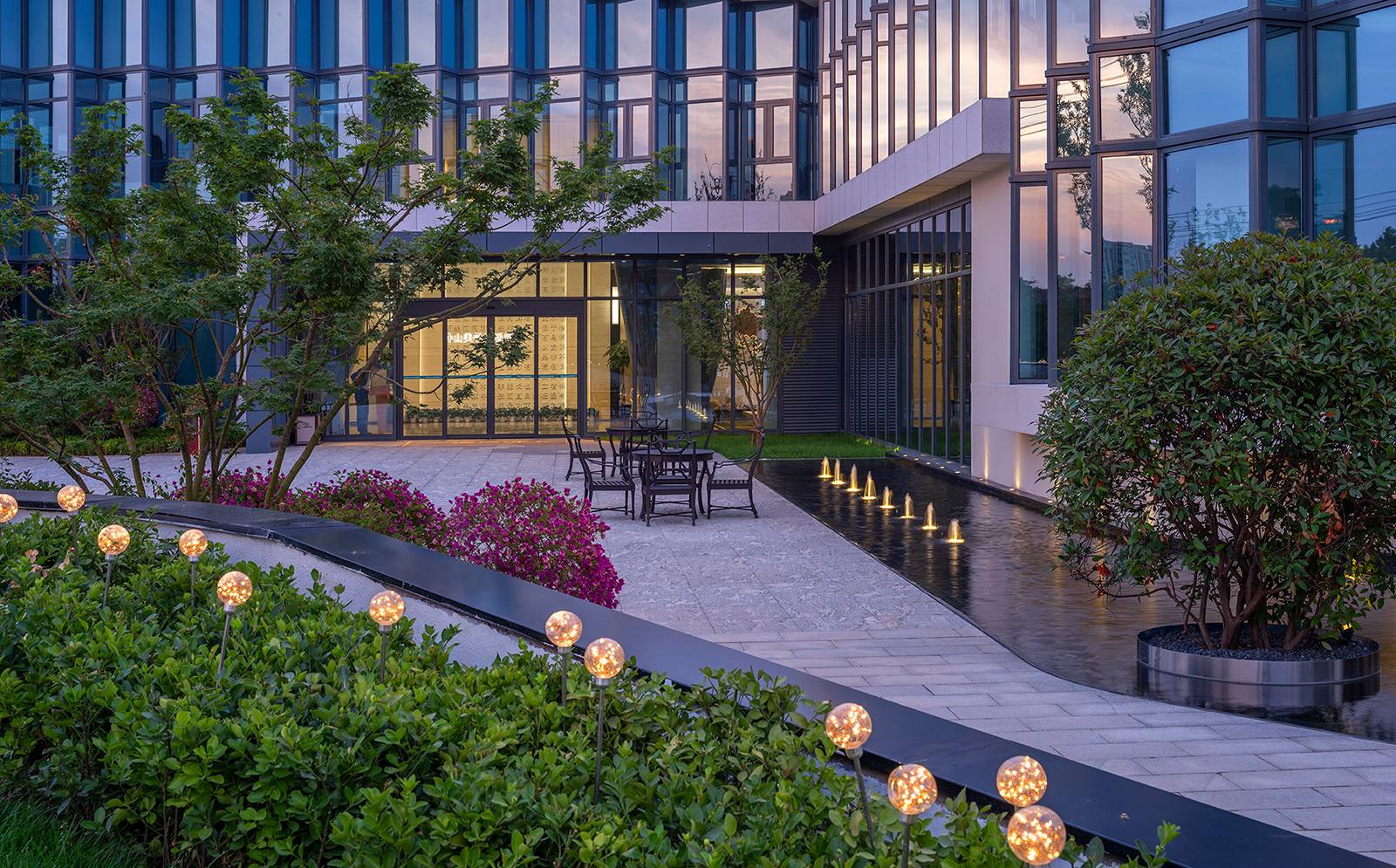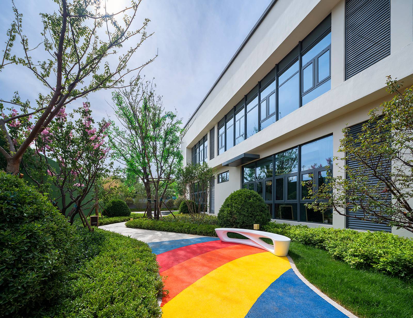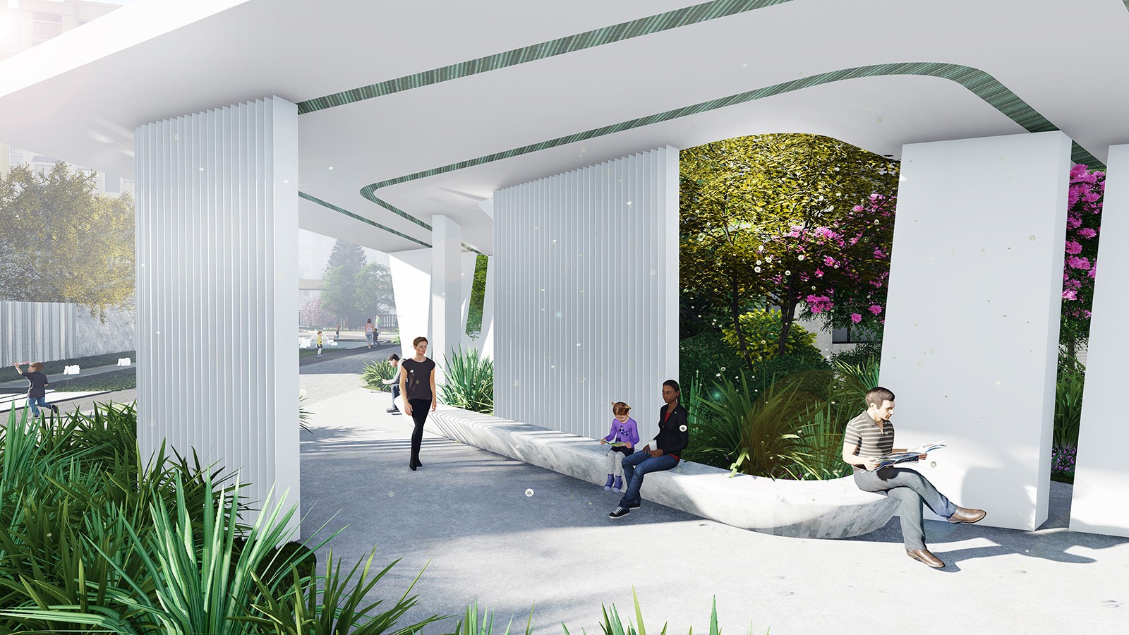 景觀通過(guò)“光與折線”尋找到設(shè)計(jì)靈感,以“追尋未來(lái)的軌跡,感受光的純粹”為主題思想,以“線的藝術(shù)與魅力”為概念,通過(guò)動(dòng)線組織和穿插,形成互相聯(lián)動(dòng)的景觀空間,打造一個(gè)自然舒適的藝術(shù)體驗(yàn)場(chǎng)景,令空間更加變幻莫測(cè)、靈動(dòng)豐富。