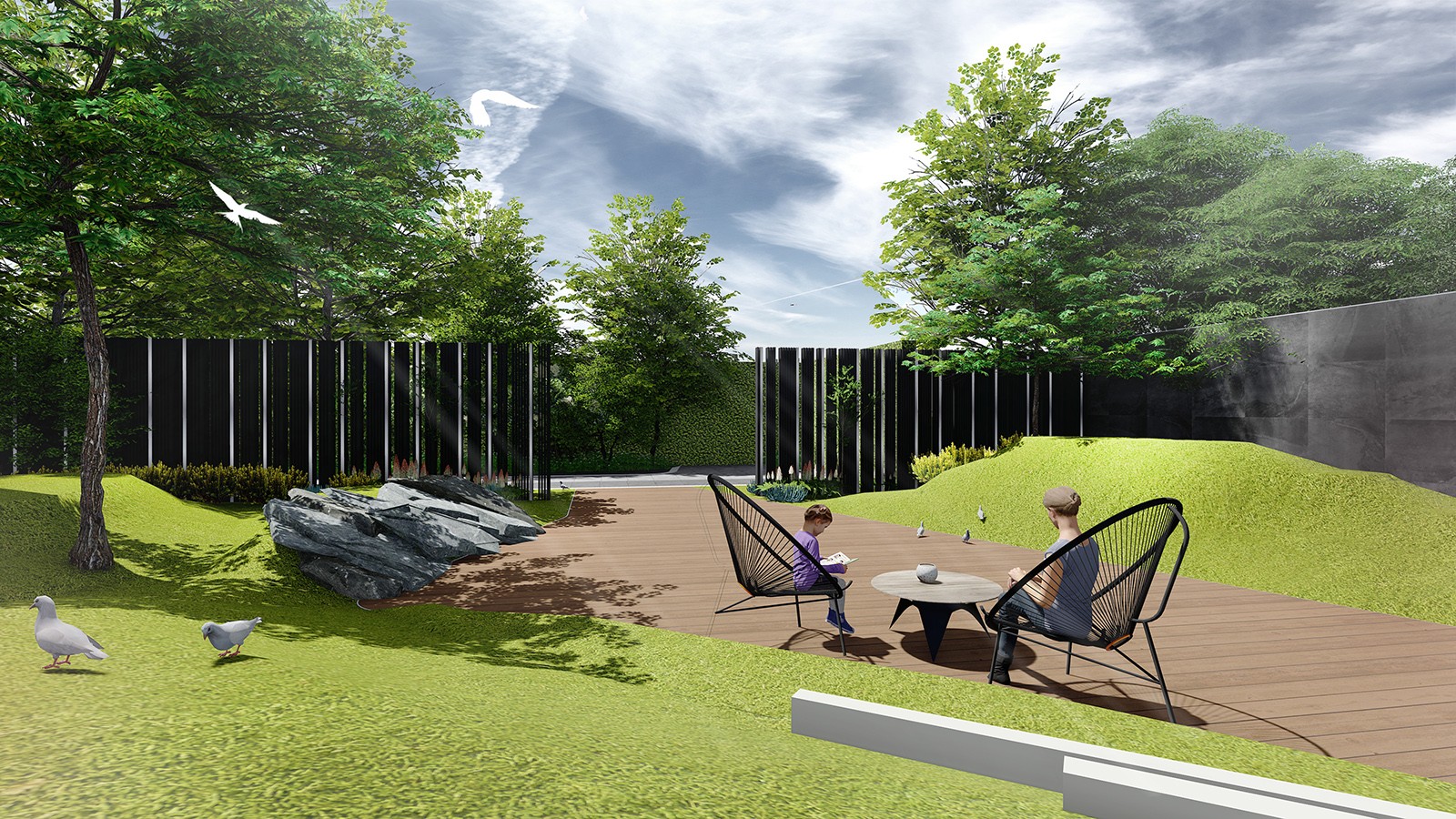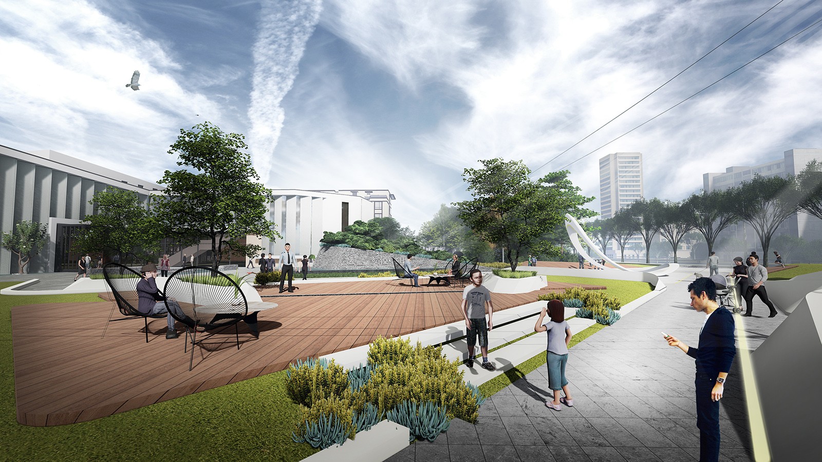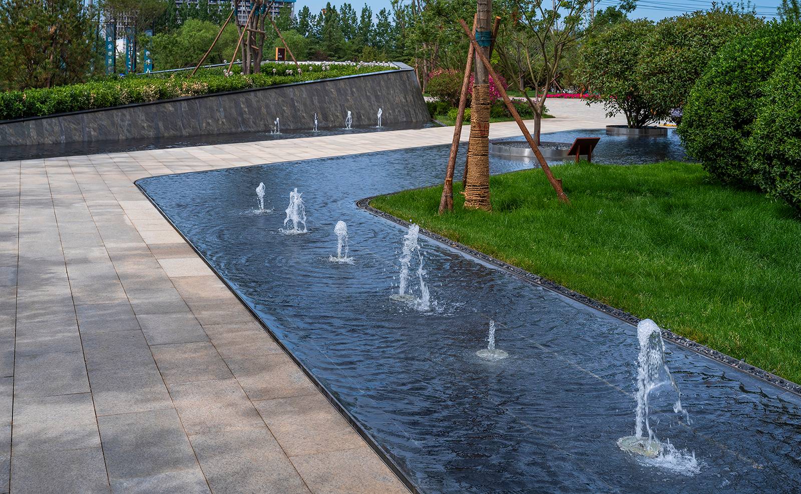 景觀中的折線擁有更多空間的可能性,形成互相影響的復(fù)合空間,使空間視覺上產(chǎn)生放大,視覺沖擊力,多變性增強(qiáng),以多變場(chǎng)景突破規(guī)則,創(chuàng)造靈動(dòng)空間。