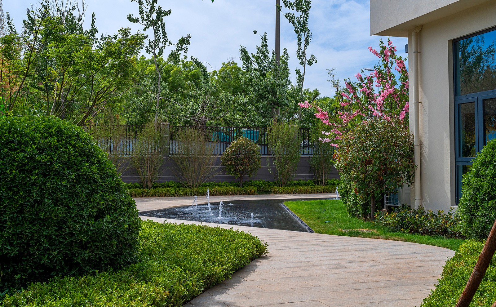 植物景觀為迎合建筑及硬質(zhì)景觀的現(xiàn)代風(fēng)格,根據(jù)各地塊景觀方案的情況,分地塊打造整體符合景觀風(fēng)格,又各具特色的景觀。整體設(shè)計(jì)“精工、品質(zhì)、時(shí)尚”的藝術(shù)花園,不僅追求舒適與功能性的體驗(yàn),且給人強(qiáng)烈的視覺體驗(yàn),感受藝術(shù)魅力的美好印象,創(chuàng)造一個(gè)陽(yáng)光明媚、舒適而安逸的生活氛圍。