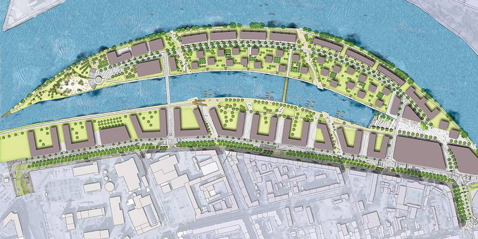 奧芬巴赫是美因河(River Main)畔的前工業(yè)港口,位于美因河上游5公里處。地理位置優(yōu)越,風景優(yōu)美。此次城市規(guī)劃設想將水和現(xiàn)有城市的緊密聯(lián)系,通過一個城市漫步網(wǎng)絡把美因河水和更多的城市建筑密集區(qū)、城市公園、城市河湖網(wǎng)絡連接在一起,使曾經(jīng)的工業(yè)半島轉(zhuǎn)化為一個新的可持續(xù)發(fā)展的城市新區(qū)。通過植入綜合商業(yè)、居住、辦公等功能空間增加中心廣場活力,并通過增加新的公共可達的藍綠色開放空間來積極改善鄰近的Nordend街區(qū)。奧芬巴赫(Offenbach)開發(fā)項目總共建立了四個大型的公共綠地。