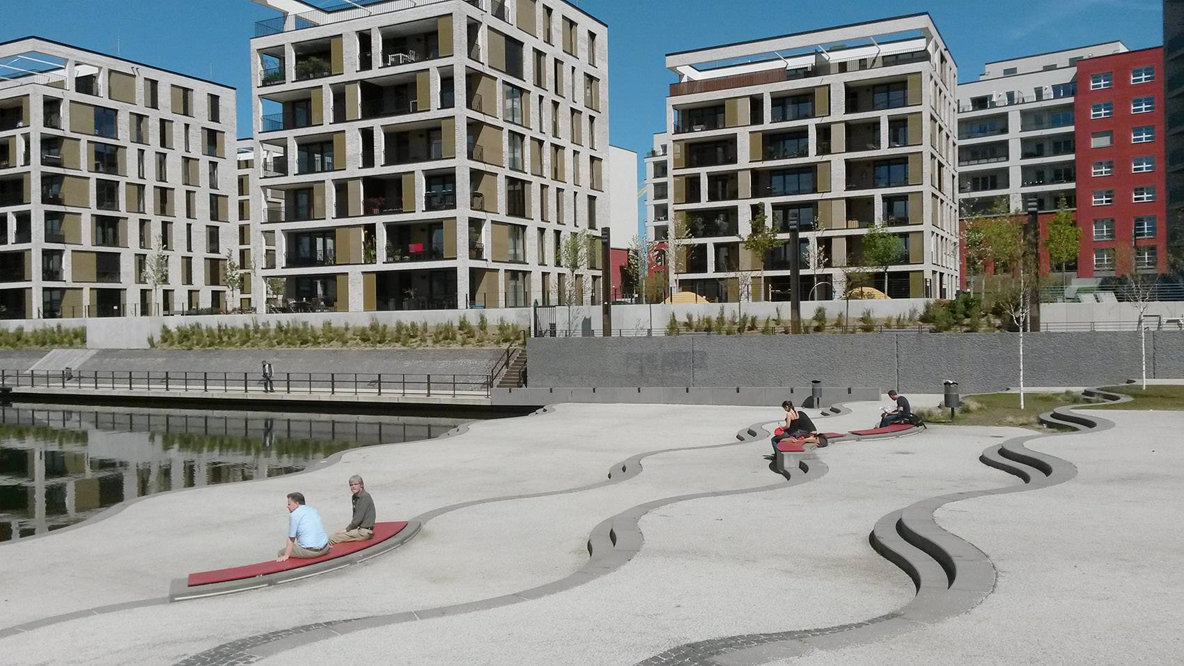 安博戴水道團隊從一個全新的視野來審視城市規(guī)劃,2007年著手奧芬巴赫港口設計時為這個地區(qū)的重新設計帶來了突破性的發(fā)展。自此以后,在巨大的起重機旁,新的城市藍圖開始建設起來了。