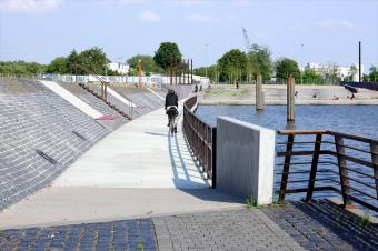 完成轉(zhuǎn)型后的奧芬巴赫港將有望成為讓未來世界為之一振的發(fā)展中心。當然,最關鍵的因素取決于該項目優(yōu)越的地理位置。這里是最佳的城市入口,擁有最方便的城市公共交通,能為城市居民提供更高的生活品質(zhì)。藍綠基礎設施的創(chuàng)建降低了噪音和環(huán)境污染,沿著美茵河的漫步道騎行二十分鐘,人們就可以到達法蘭克福城市中心。