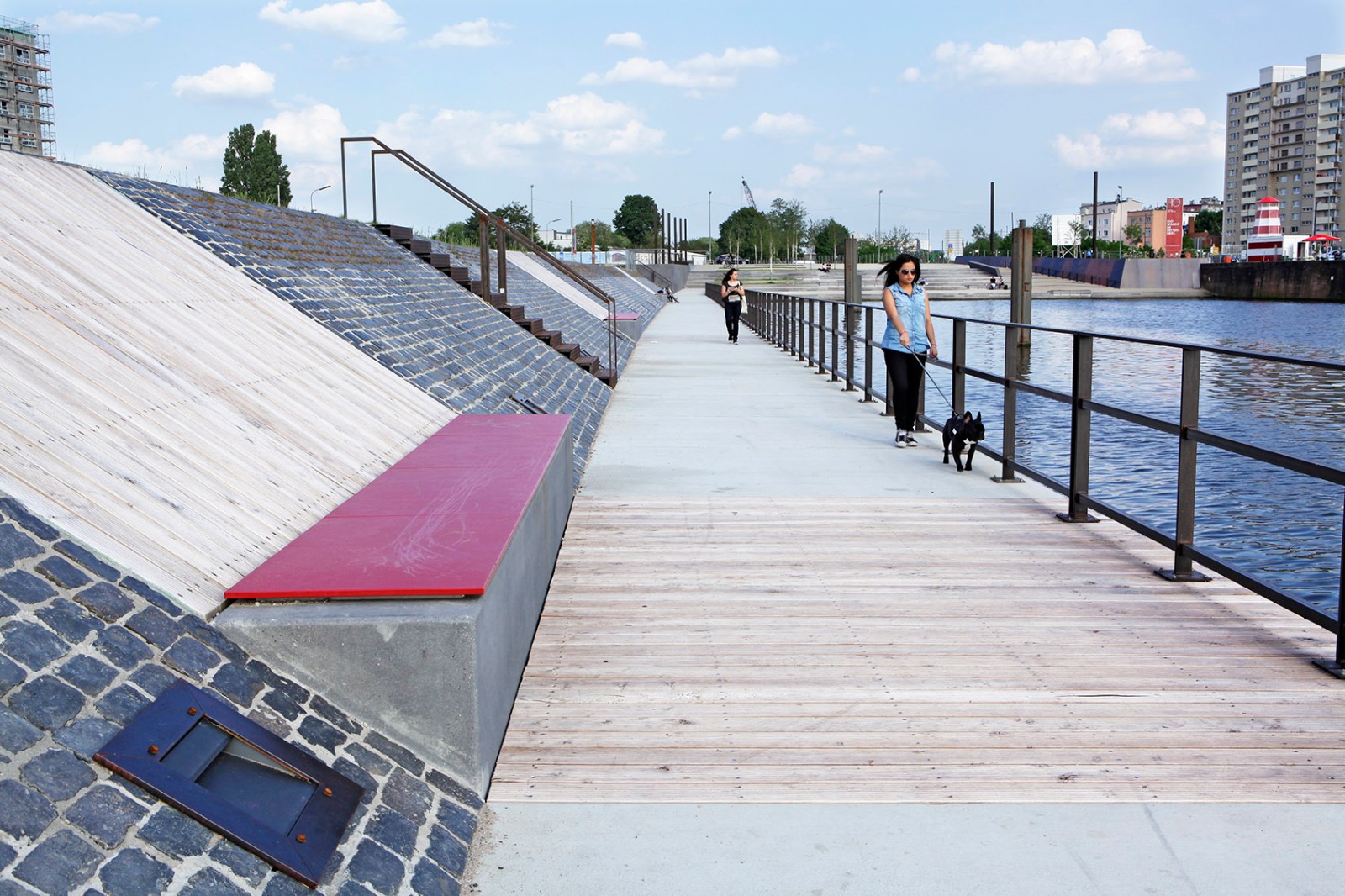 受現(xiàn)存遺址和港口歷史的啟發(fā),建筑材料我們選擇了粗糙、堅固和耐用材料。天然的大幅面鵝卵石和耐候鋼裝飾墻壁和欄桿,帶紋理的水泥和膠泥混凝土鋪筑人行道。廣場照明設計根據(jù)標準的八米高建筑開發(fā),并裝有可持續(xù)的LED設備。