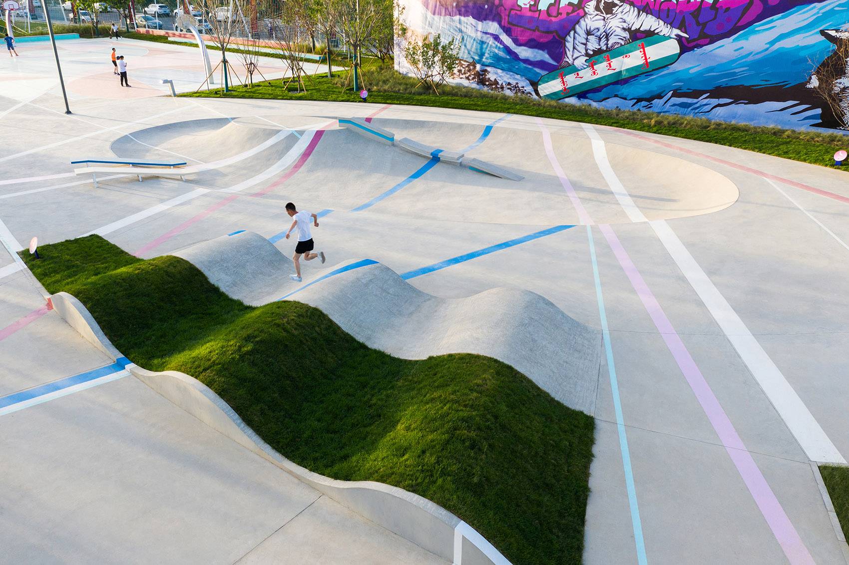 五彩斑斕的藝術(shù)“彩帶”拍印在這個地形變化豐富的極限活動體驗區(qū),無形中注入的無限活力不斷吸引著前來嘗試“放飛”自我的年輕人和愛好者們。