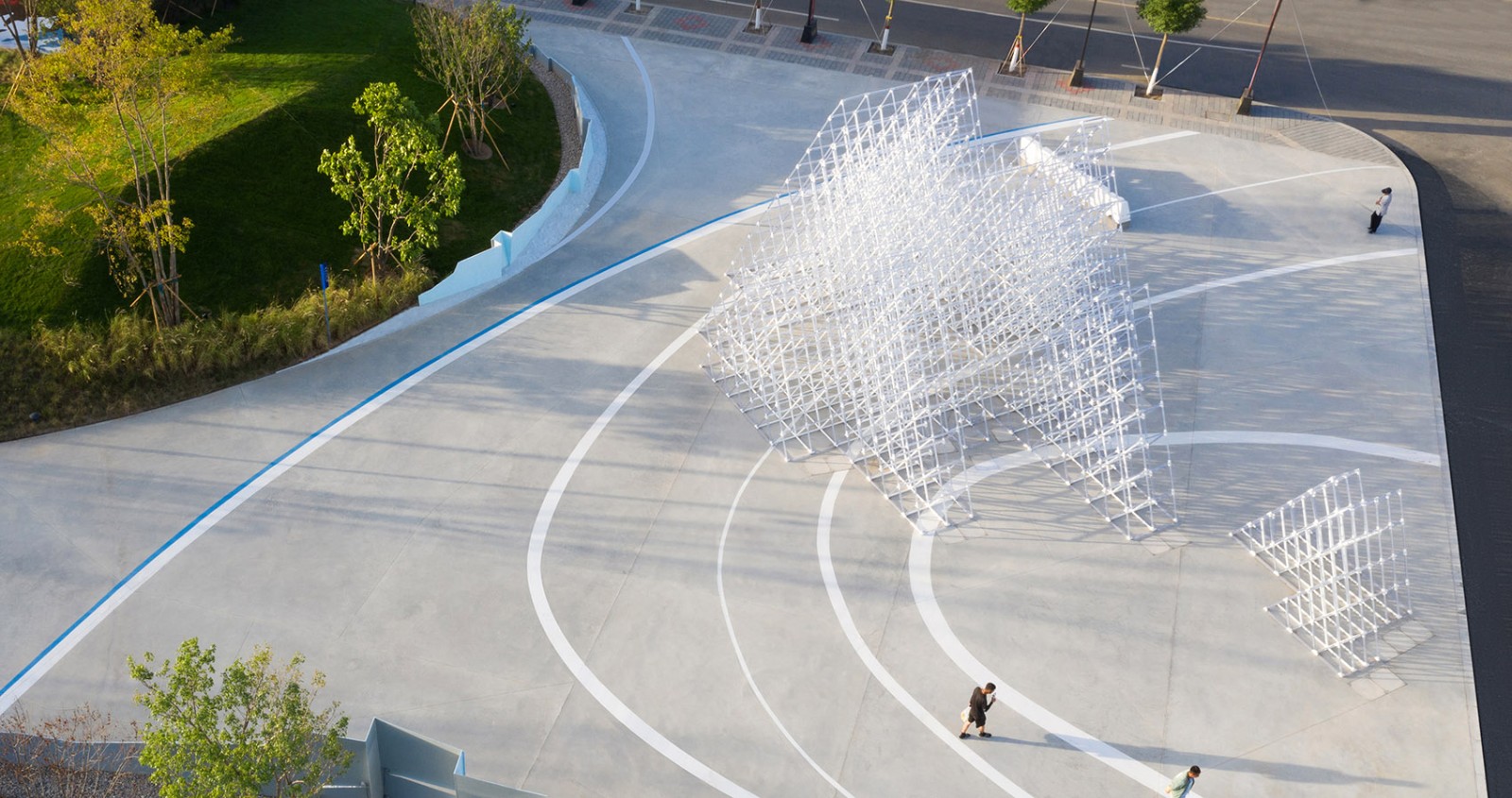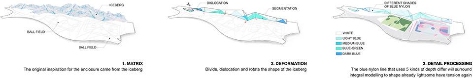 我們希望通過對場地中‘地平線’和‘天際線’的重新塑造,形成一段最透氣的邊界、一座最輕盈奪目的‘路標(biāo)’、和一處處最熾熱的活動場。