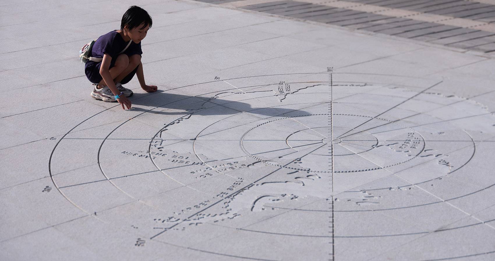 公園西廣場地面上的冰川分布科普石材地雕。