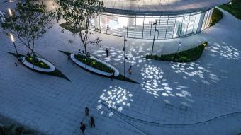 ▲廣場上的休憩座椅和激光投影