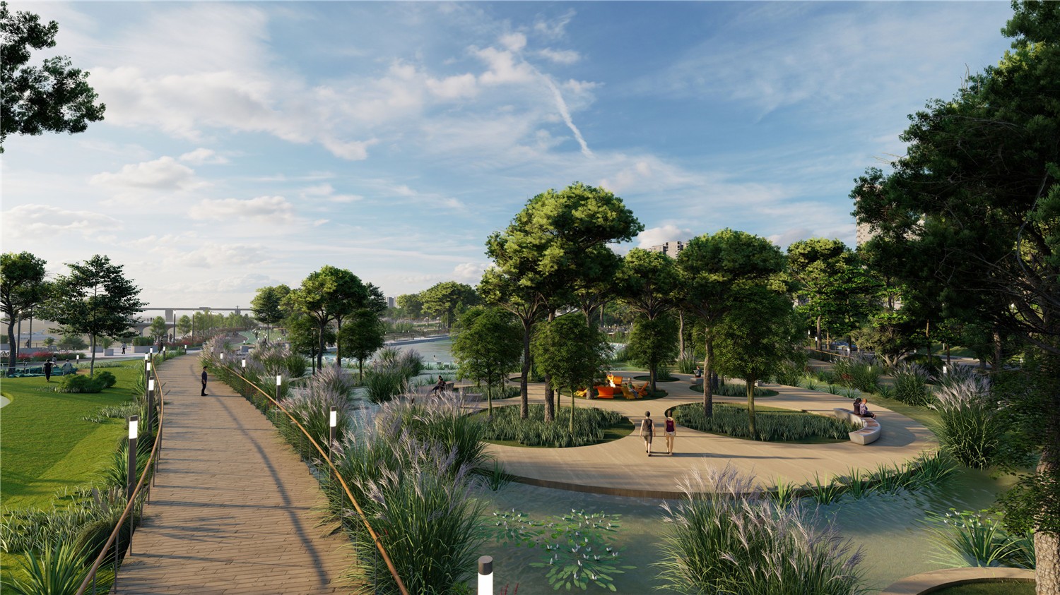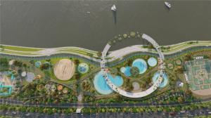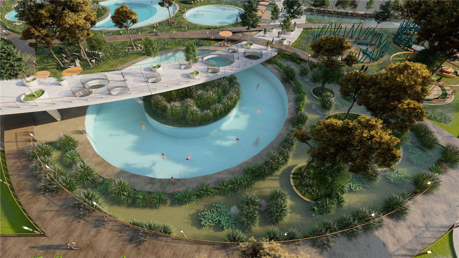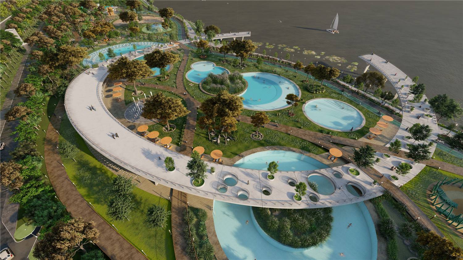 該提案將游泳池綜合體與周圍的文化設施結(jié)合到起來。因其西靠SagakSagak藝術(shù)區(qū),東鄰植物學習中心,該方案通過蜿蜒交織的步行道將這三個設施連接起來,使行人都能方便地通行所有設施之間,將整個河岸轉(zhuǎn)化為一個突出的“自然驛站”。