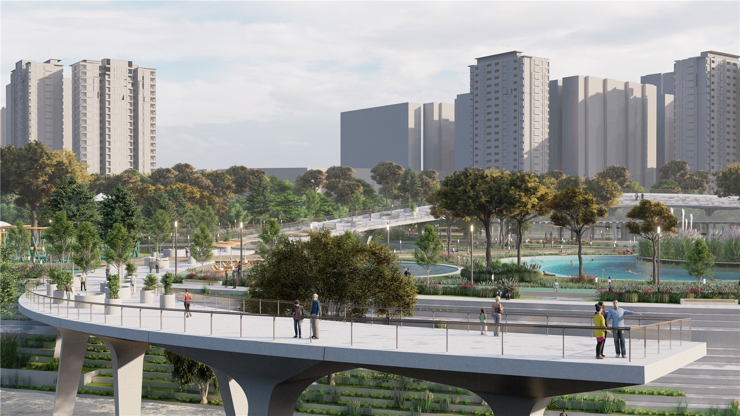 交錯起伏的環(huán)步道為公園的公共各種活動創(chuàng)造了機會和條件。在自然的環(huán)抱中,以多元功能有機組合的方式為公眾提供娛樂和休閑空間成為了可能——人與自然完美契合與互動。在這里,承載著可用于各種運動活動、休憩、遮陽和親近大自然的兒童互動空間,從而創(chuàng)造出了適合所有年齡段的多功能公園。