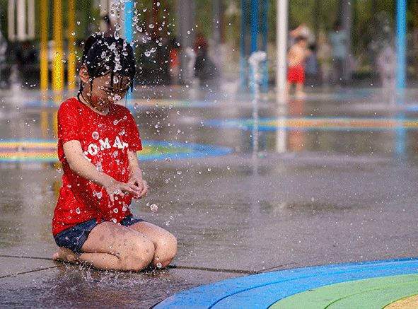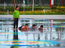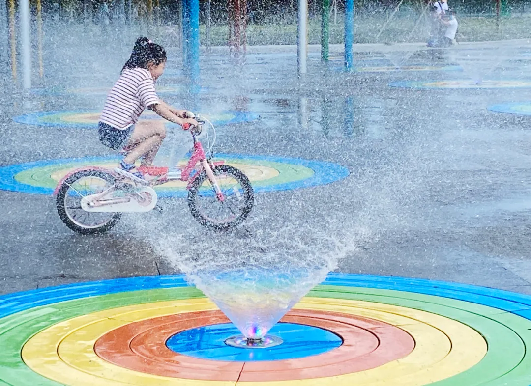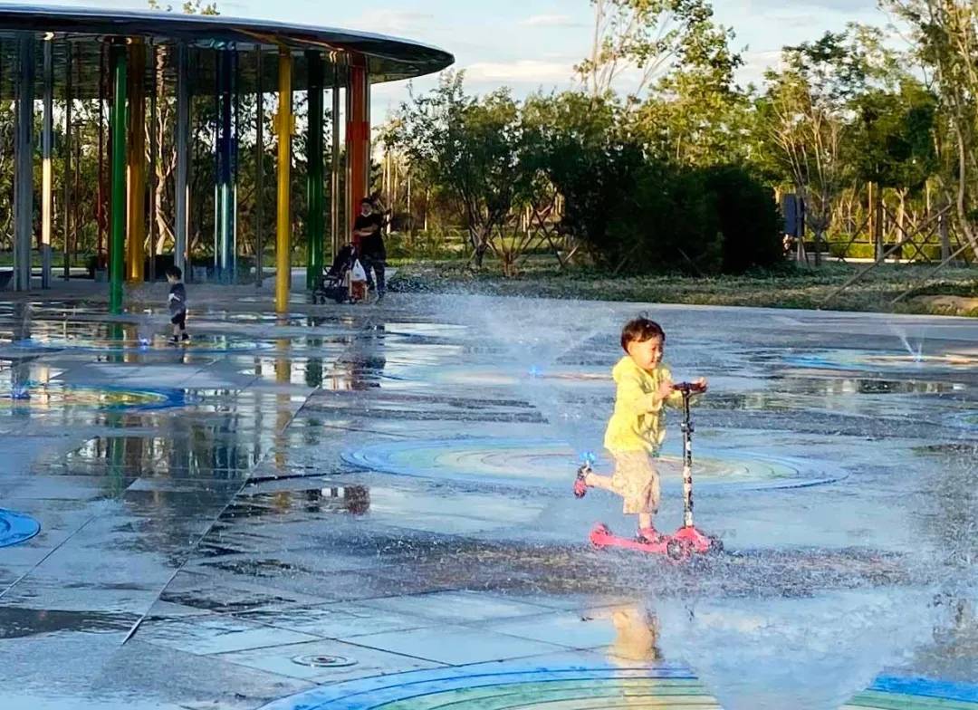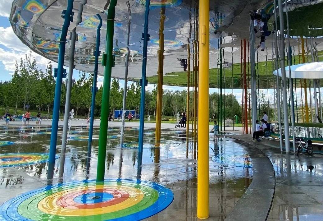 彩虹廣場(chǎng)能看更能玩,作為易蘭獻(xiàn)給童年的禮物,帶給孩子們一個(gè)夏天的清涼。