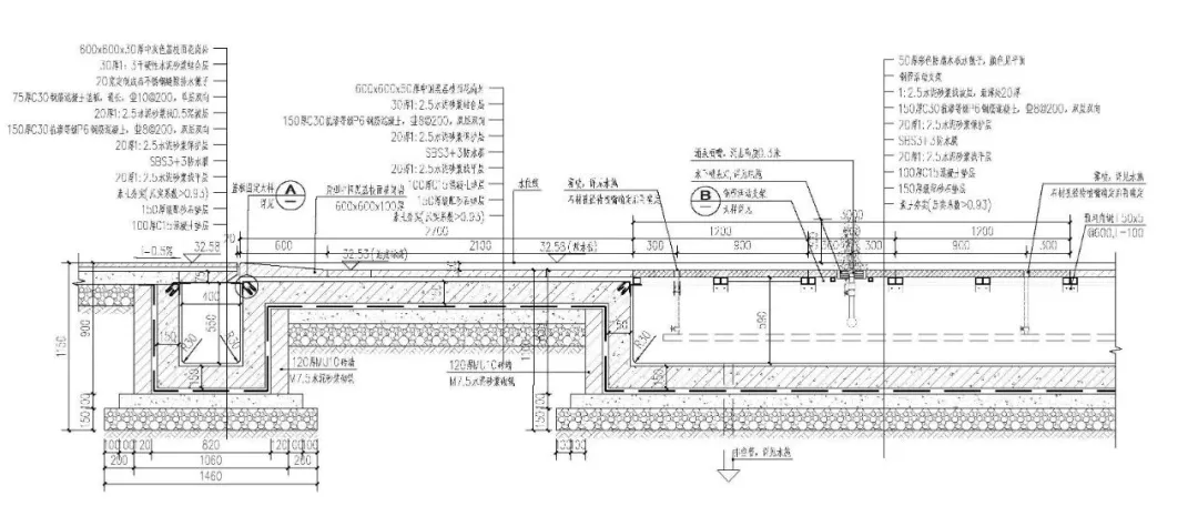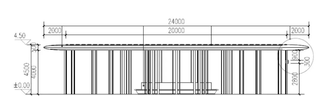 亭子頂為3mm厚鏡面不銹鋼,頂內(nèi)部由鋼骨架龍骨支撐外表皮,在亭頂下表面做了一圈滴水槽,以防止雨水沿著亭頂向亭頂下表面中心位置流動(dòng)。