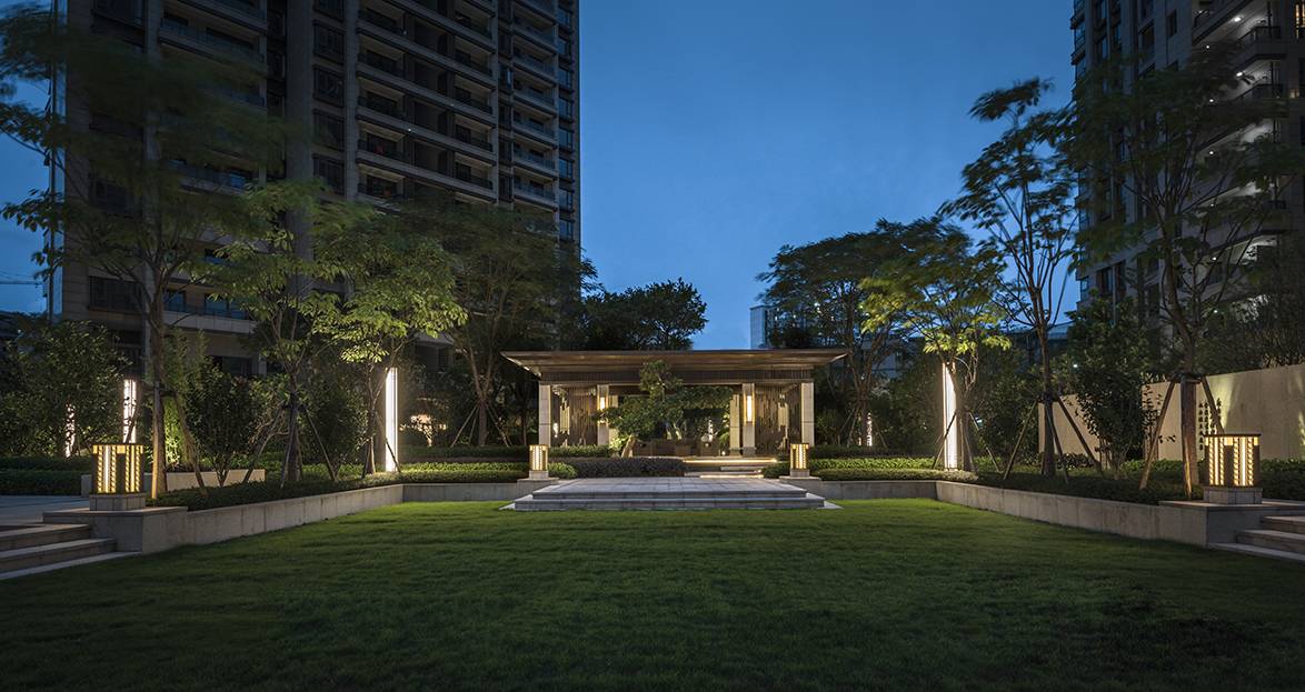 廣州金茂府景觀設(shè)計,將新中式意蘊(yùn)融融入當(dāng)代景觀設(shè)計中,時宜得致,于一方院落,窺得自然本真,領(lǐng)略四季變幻的美境與閑情。