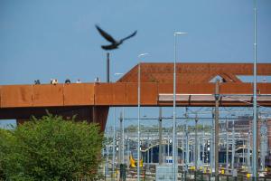 Paleisbrug是一座橫跨鐵路,是一個(gè)集公園,行人及單車天橋于一體的場(chǎng)所。長(zhǎng)250米的橋連接在Hertogenbosch和Paleiskwartier中的各個(gè)大學(xué)研究機(jī)構(gòu),辦公室,住宅。新大橋還安裝了一個(gè)大型的太陽(yáng)能集熱器,它將為周邊地區(qū)提供能源。