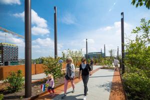 橋上的公園與多美兒河和周圍的休閑區(qū)在整體感覺(jué)上是不相悖的。超過(guò)2500平方米的公園已被添加到斯海爾托亨博斯中心。