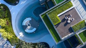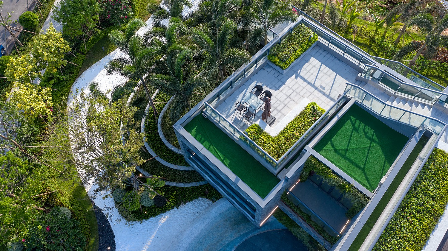 屋頂花園重在營造休閑的濱海度假景觀,憑海臨風(fēng),可遠眺海景,俯瞰整個展示區(qū),設(shè)計現(xiàn)代簡約,植物層次、流線空間生態(tài)自然、舒朗通透,場地種植結(jié)合功能布局,根據(jù)不同植物品種營造主題,生成富有場地整體風(fēng)格的植物群落,打造放松自在、品質(zhì)時尚的現(xiàn)代海居景觀。