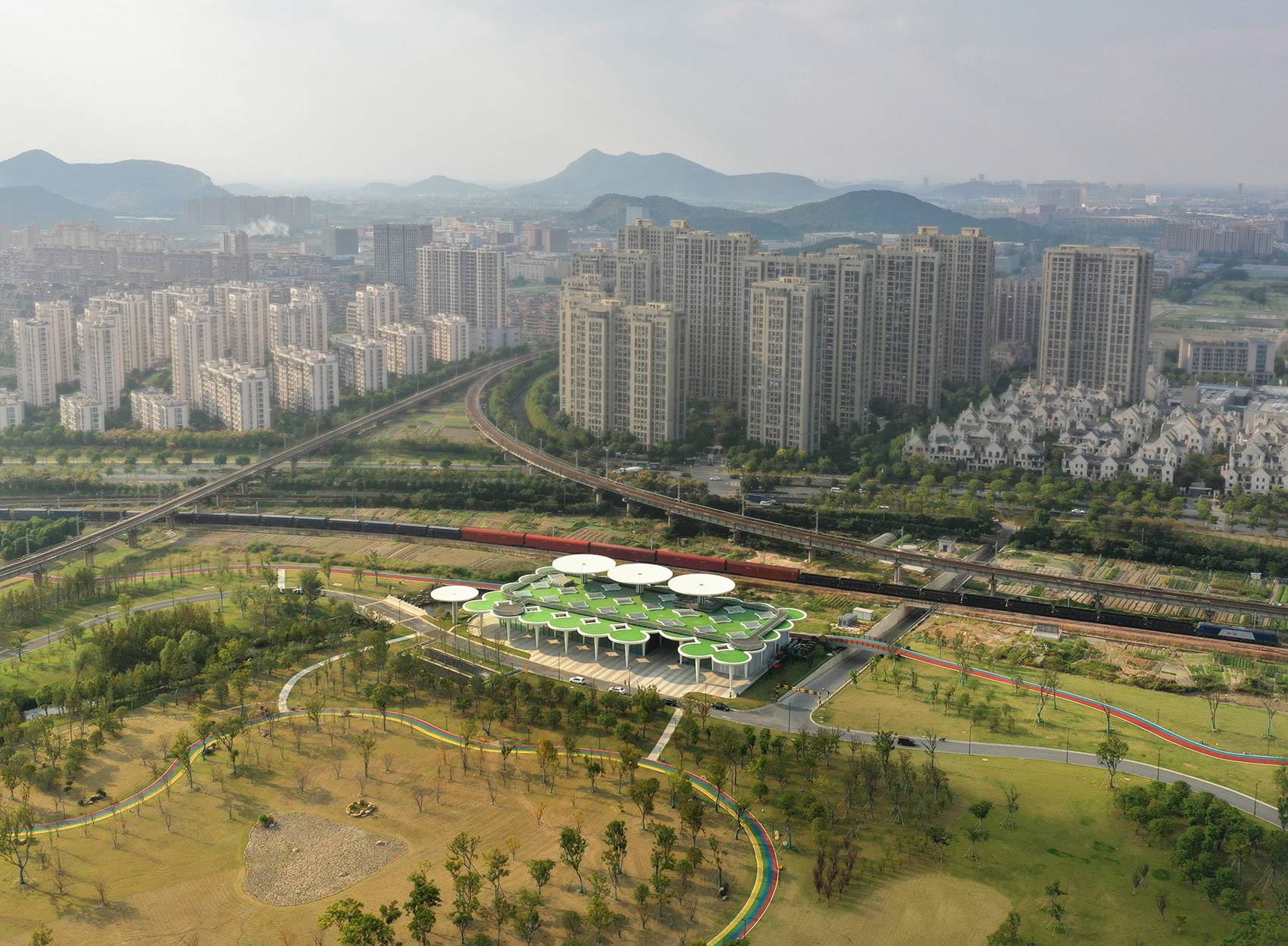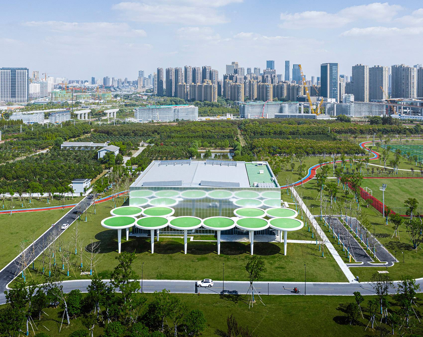 ▲項(xiàng)目鳥瞰,體育公園是城市中的綠洲