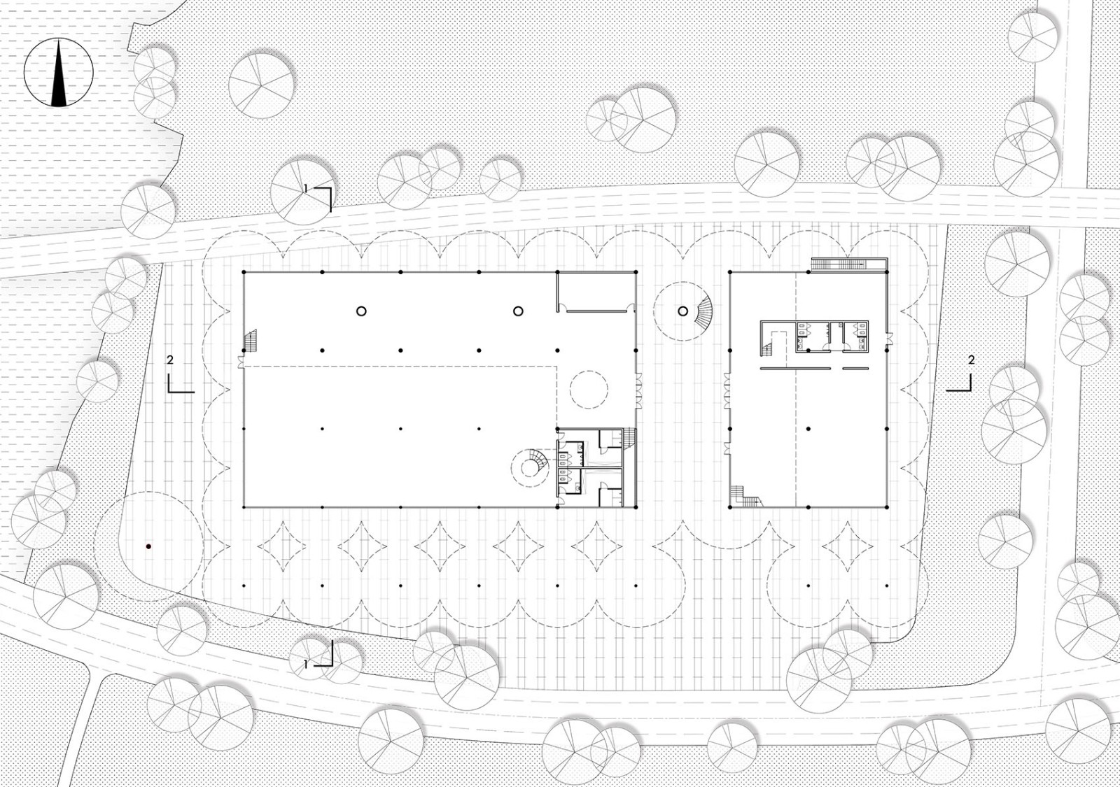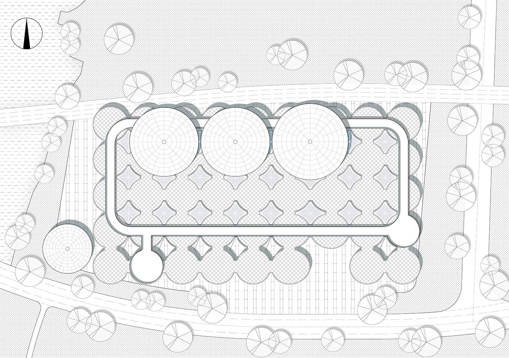 ▲健身中心頂視圖,由傘狀單元構(gòu)件組成