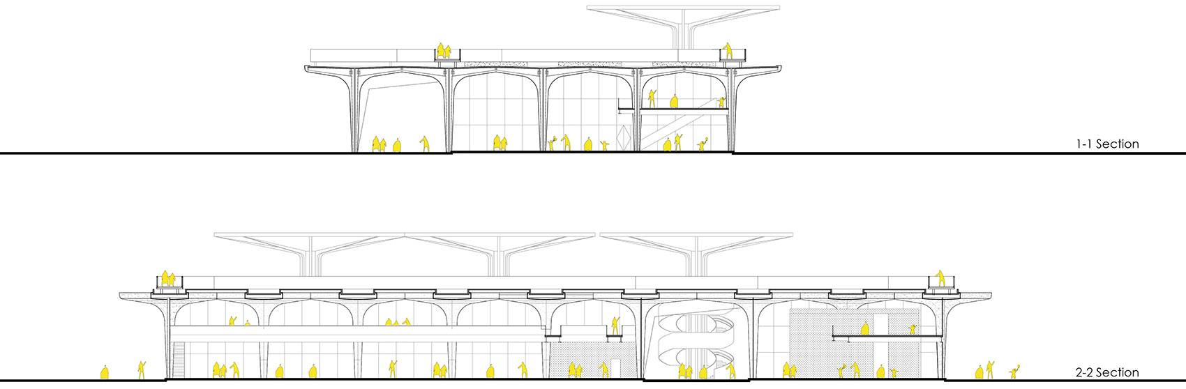 ▲剖透視圖,多維度復(fù)合的空間
