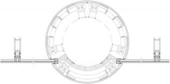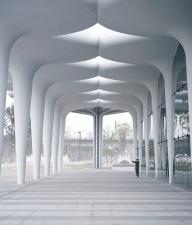 ▲球館與公園交接處傘狀柱廊形成的灰空間