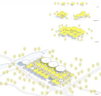 ▲項(xiàng)目生成示意,傘狀單元組成建筑空間