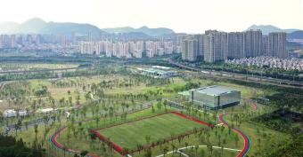 體育公園是高密度城市中難得的城市綠洲,它以生態(tài)樂跑為主題,場(chǎng)地景觀簡(jiǎn)約流動(dòng),開放的草坪,流線型的跑道鑲嵌其中;原生態(tài)綠植被最大限度的保留下來。