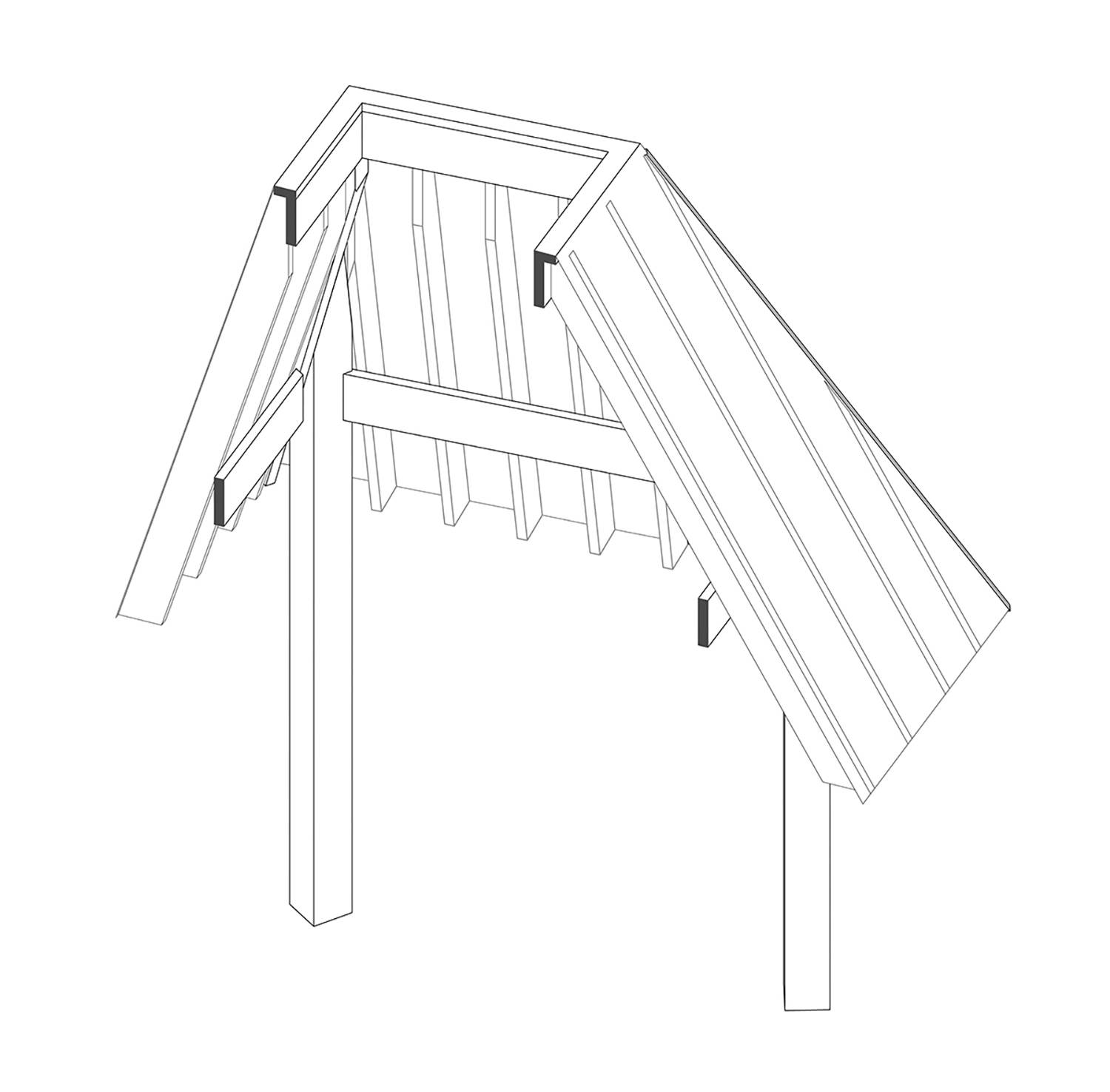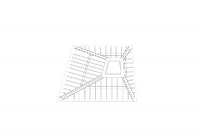 我們用一個不規(guī)則的四邊形作一個屋頂,屋頂?shù)捏w形也是不規(guī)則不對稱的,上面覆蓋木片瓦。四根柱子將它撐起。