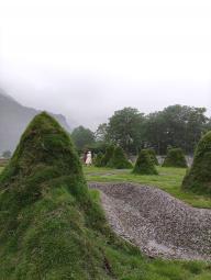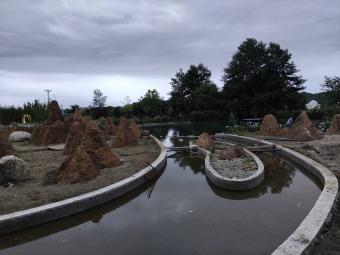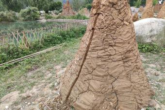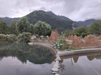 小綠球藝術家光子和地球君,根據《山海經》地理,創(chuàng)造了形態(tài)各異的53座草山。 包含3座5米高的大山和50座2-3米高的小型草山;并挖掘環(huán)繞草山的11條溪流,安裝澆灌草山和噴淋和噴霧系統(tǒng),及修建水上木島。霧氣繚繞,草兒旺盛,整個“草山?!比缤删?,還未建成時即吸引游客發(fā)布數百條抖音。