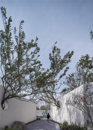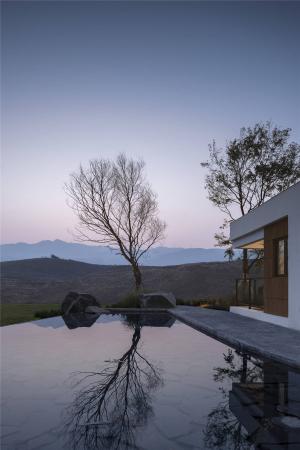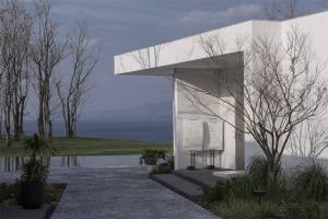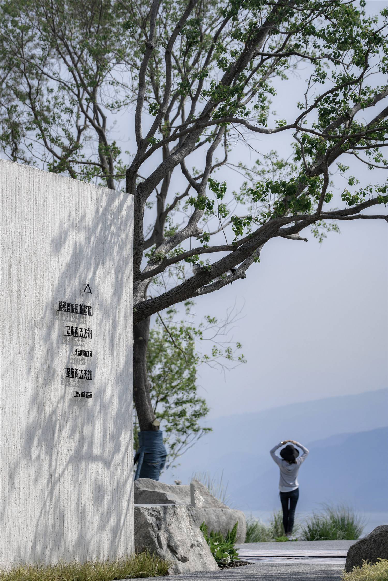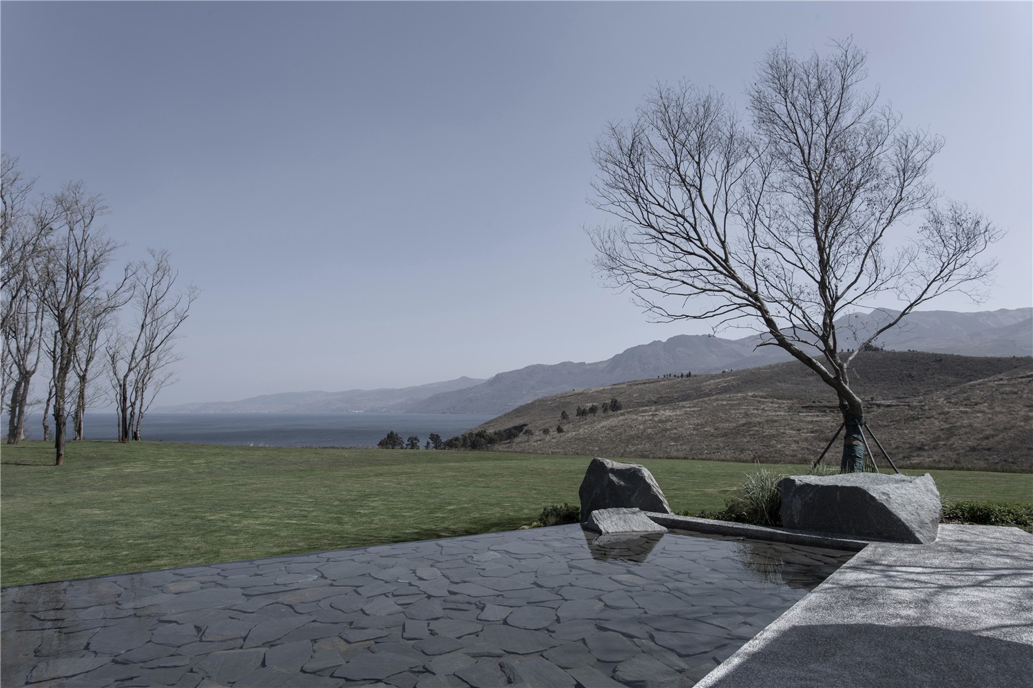 For the outdoor site of only more than 2,000 square meters, the landscape construction, the design of life scenes, the extraction of elements, the volume, material, color of the space, etc. all come from this lake and mountain, and return to this lake and mountain. The entrance design uses a series of walls to form a serpentine courtyard to limit the space. The wall conforms to the natural flow, so that the sight can be guided, and the behavior experience of the space can be specific and subtle, living in the present.