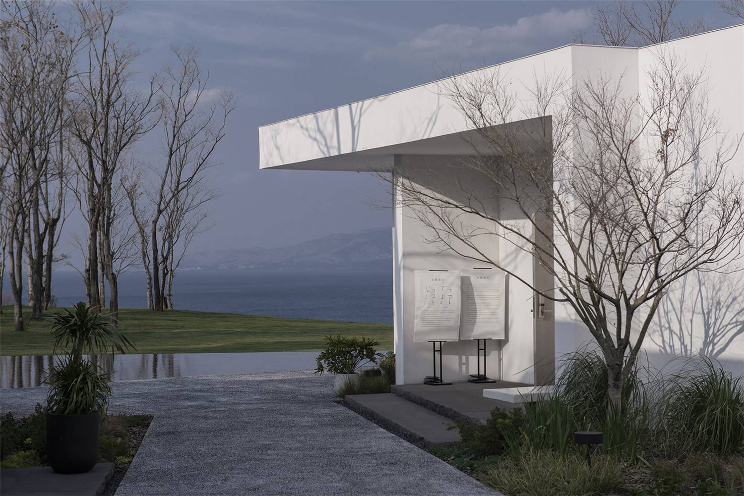 而這4棟建筑單體,2000多平米的戶外景觀生活營造,該以怎樣的姿態(tài)來面對這片湖山?琉璃萬頃的撫仙湖開闊、空靈、曠達,她的美,超越時間,超越空間,而在天地間渺小如蜉蝣的我們,是否也可以在此地,超越外在的浮華,超越內在的不安?