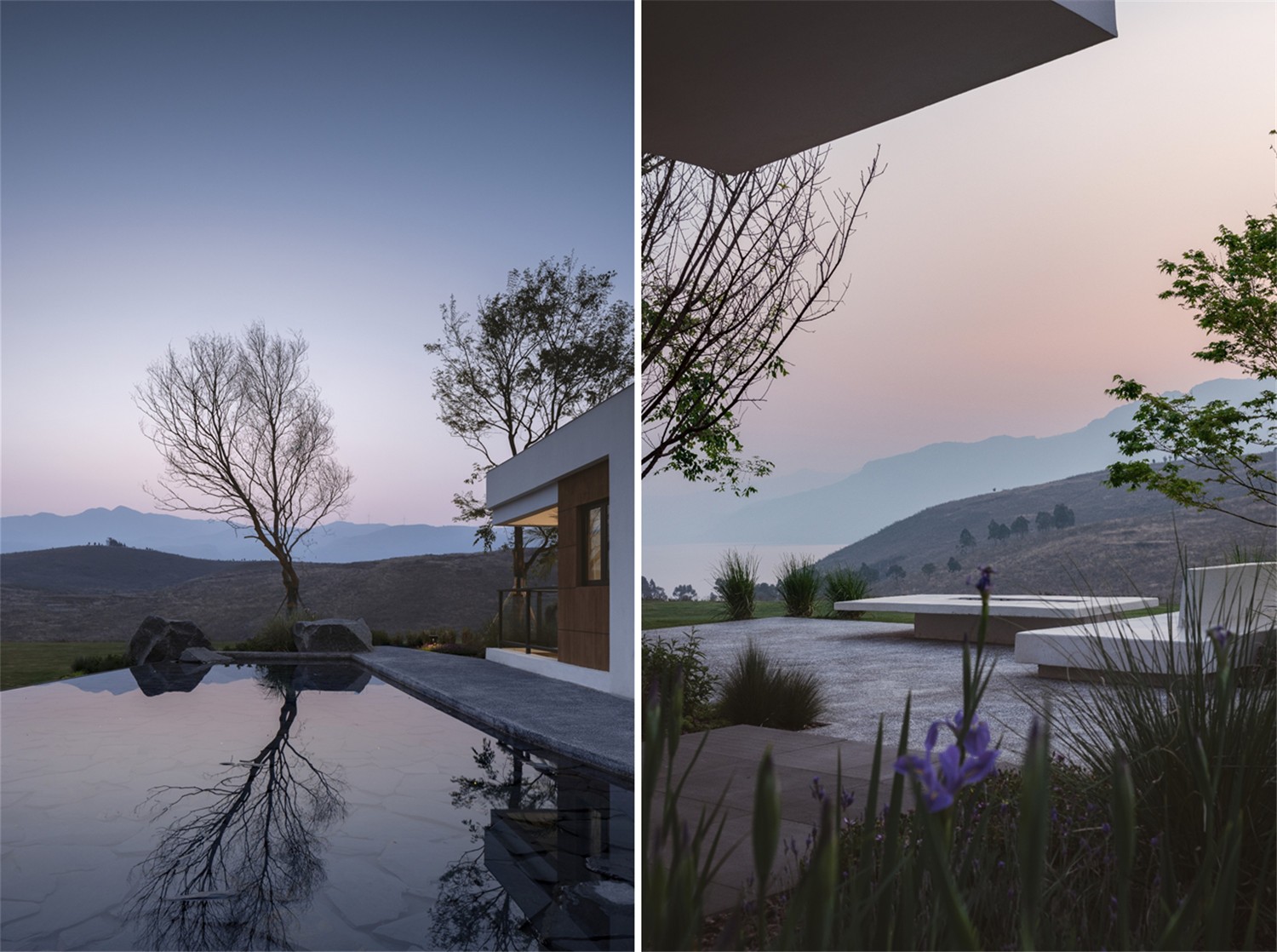 The water surface in front of the house extends the endless lake surface to the front of the house through accurate calculation of the angle of sight.