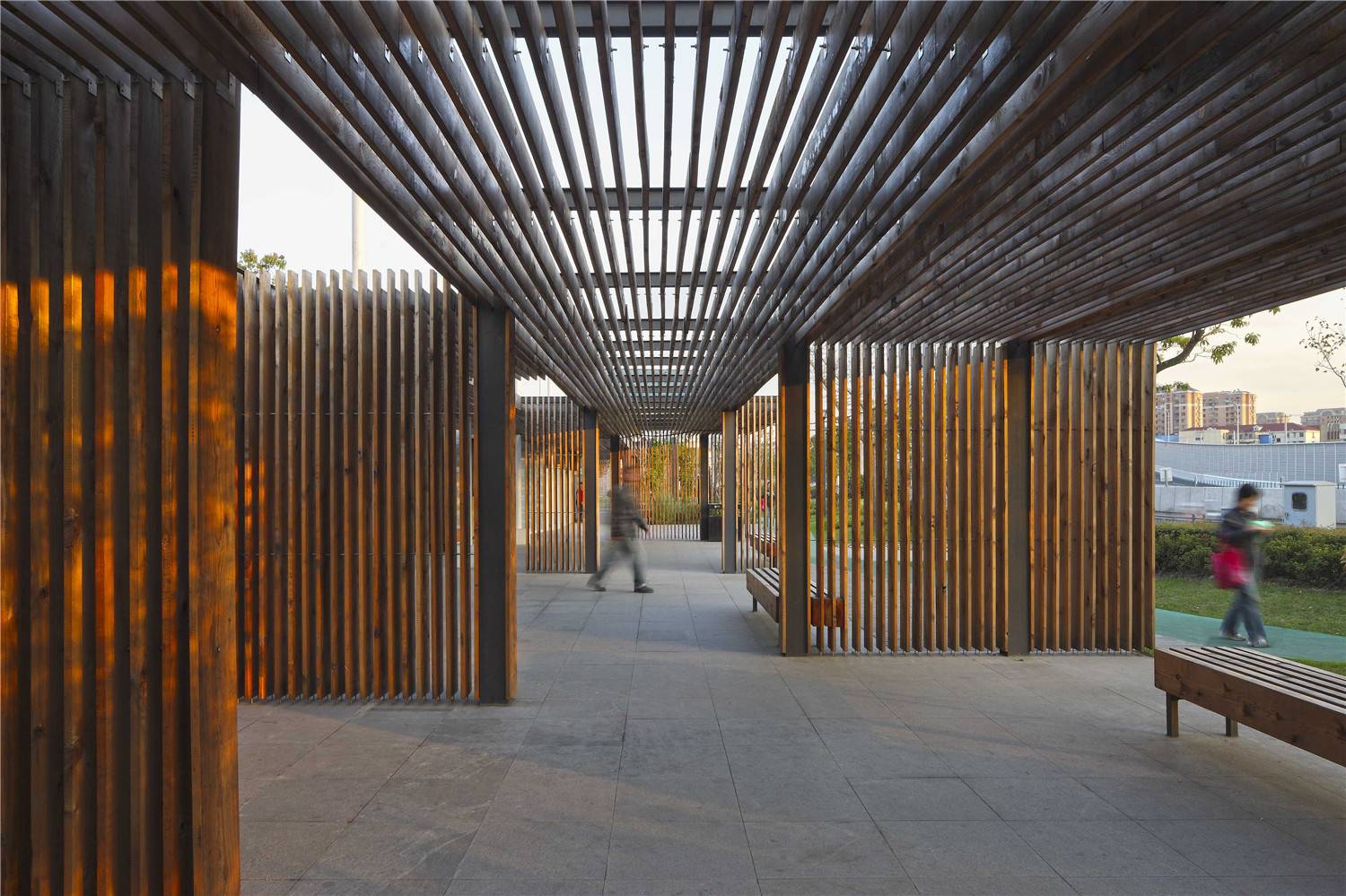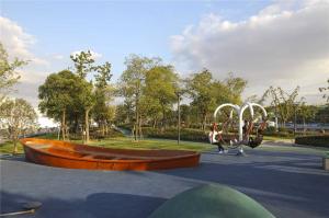 The project includes the renovation of Fenling Park and it’s pavilions, and the creation of a new children’s playground. In recognition of Suzhou Creek’s historical role as a shipping route, this playground integrates components of a former cargo ship into its fabric. A life boat, bollards, and part of a steel hull have been salvaged from a ship wrecking yard in nearby Jiangsu province. Then transported down the Yangtze River and up Suzhou Creek and craned into place to provide a sculptural, historical and sustainable play place.