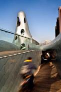 This new green public open space runs parallel to Shanghai’s renowned Suzhou Creek. To overpower the visual barrier of the road and flood-wall, a 400m long elevated walkway weaves its way through existing tree tops to provide a variety of views of the river, the park, and the surrounding district. It also incorporates a 20m viewing tower, a kiosk, rain shelters, office space and a café-tea house. When the walkway bridges a major city road it is wrapped in a screen that is formally inspired by the river’s most distinctive indigenous fish – becoming not only a major landmark for the area but also a primary symbol of the project.