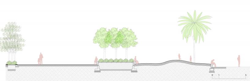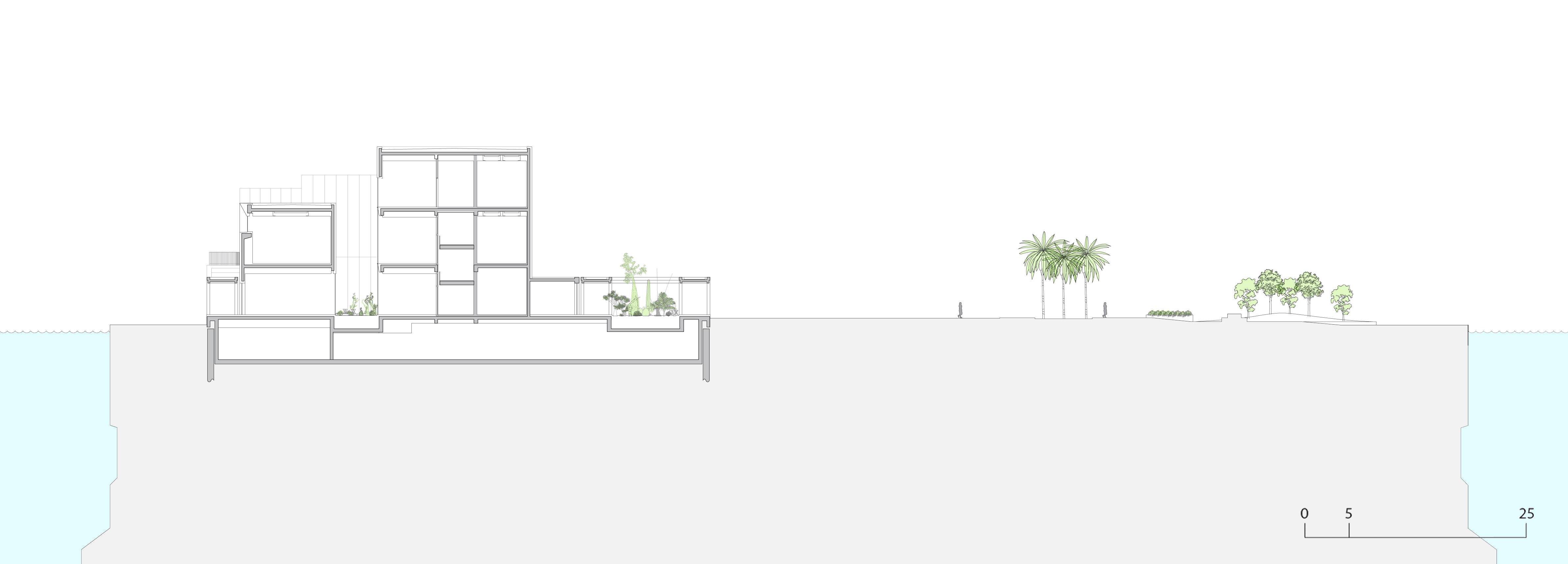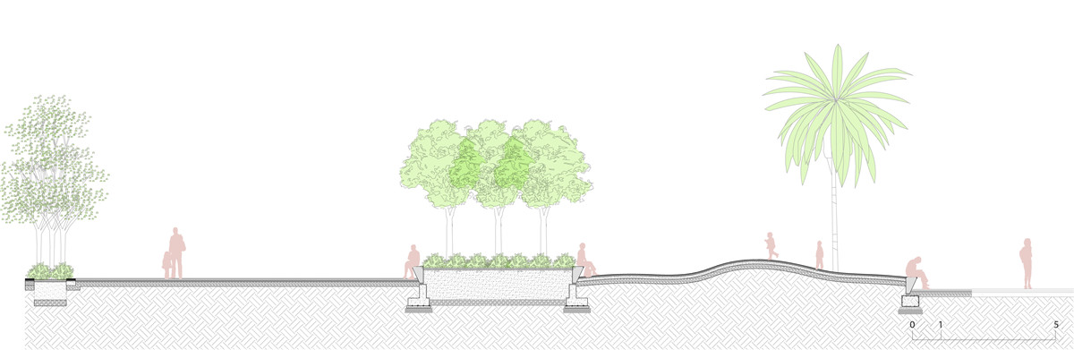 Given the sensitive desert climate of the gulf, it is designed mainly as a fluid hardscape with a selection of regional plants that require minimal irrigation.