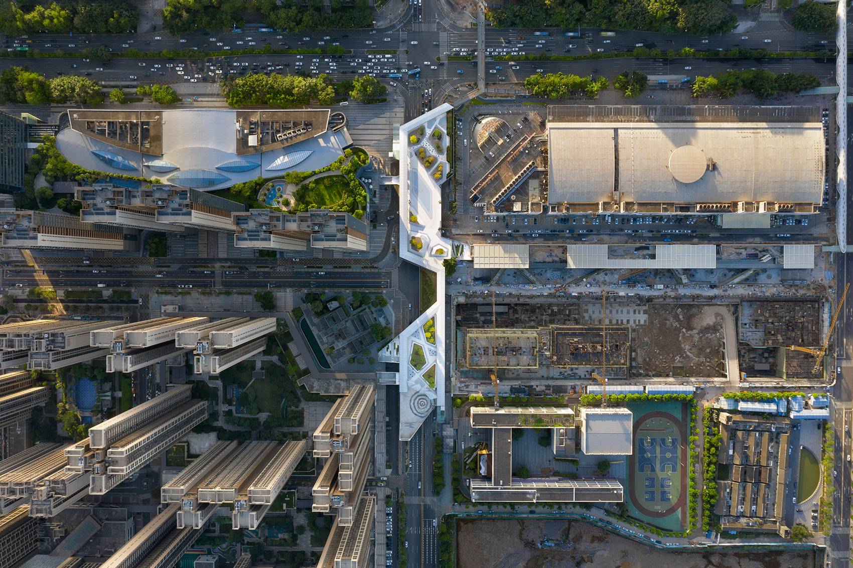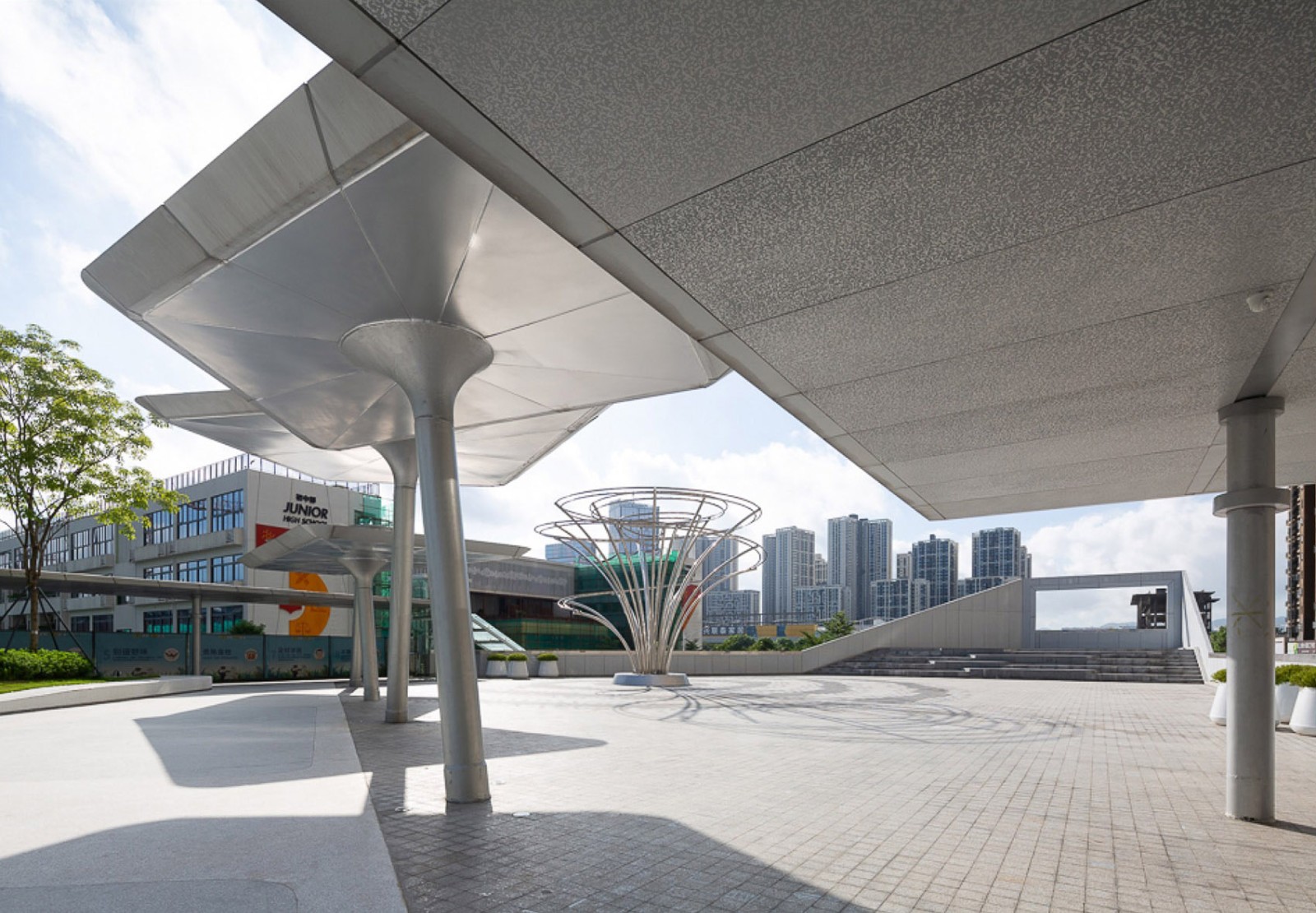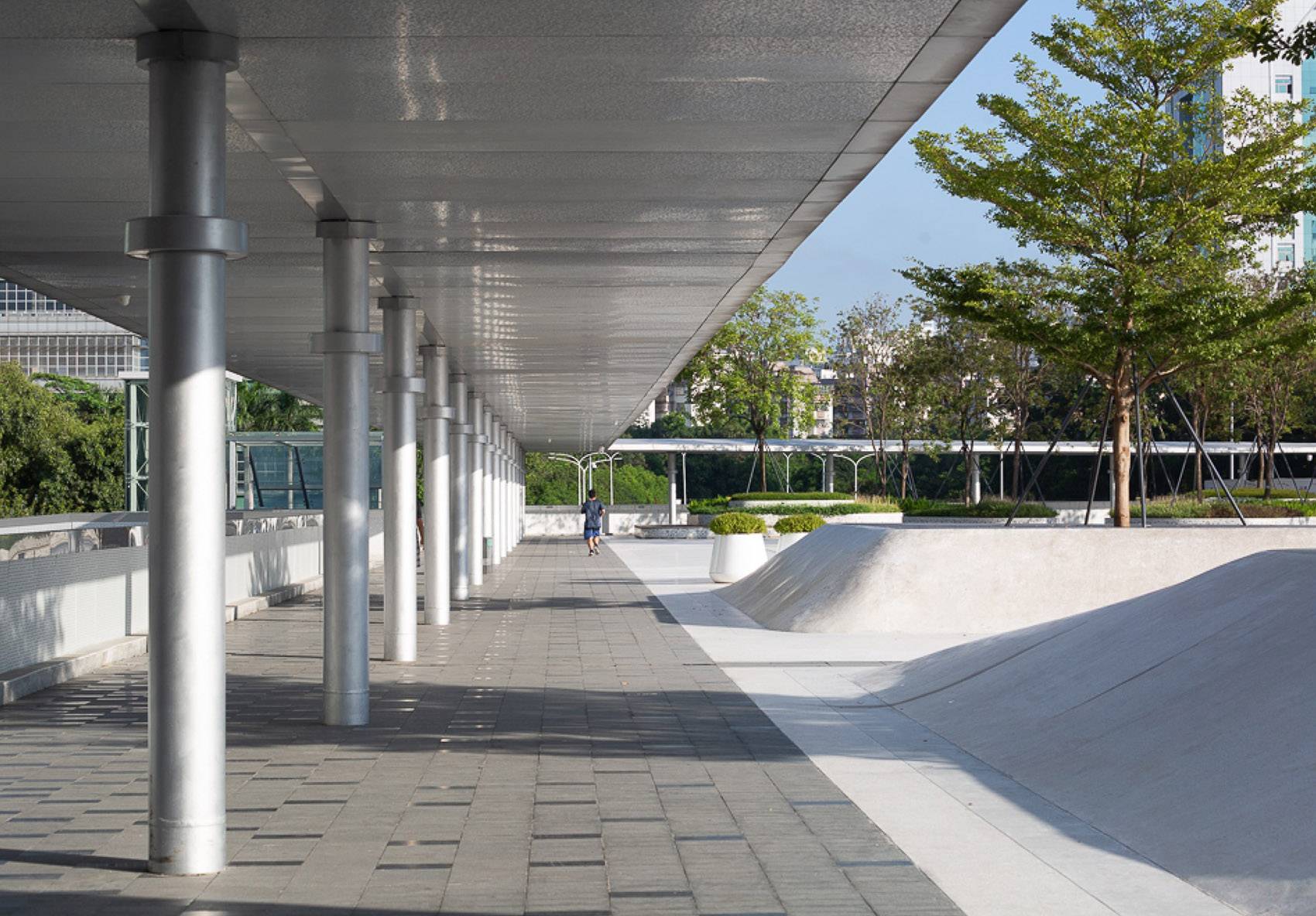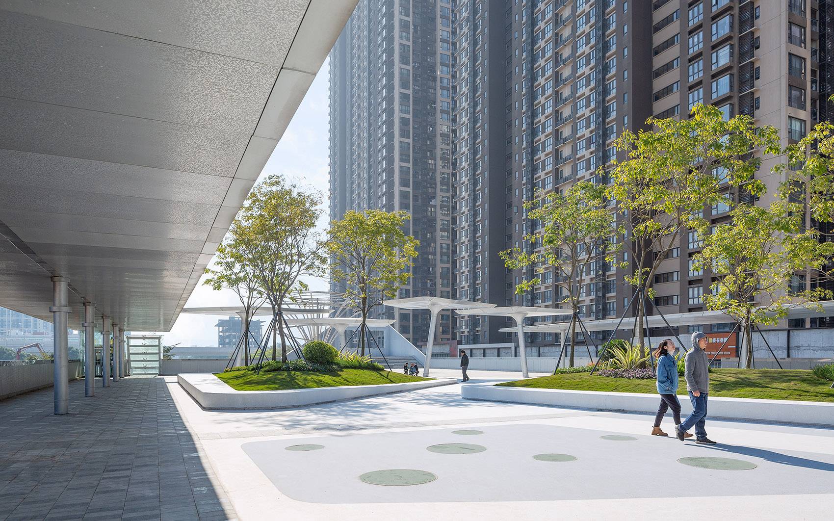 萬科作為龍崗片區(qū)三網(wǎng)融合的代建單位,邀請我們坊城設(shè)計來做這個片區(qū)的慢性交通系統(tǒng)設(shè)計,其中包含了8條天橋的整體交通體系規(guī)劃。坊城設(shè)計負責整體慢行系統(tǒng)的規(guī)劃、建筑以及景觀設(shè)計。這次我們介紹的是其中建筑與景觀融合度最高的二號連廊—-“漂浮群島” 。