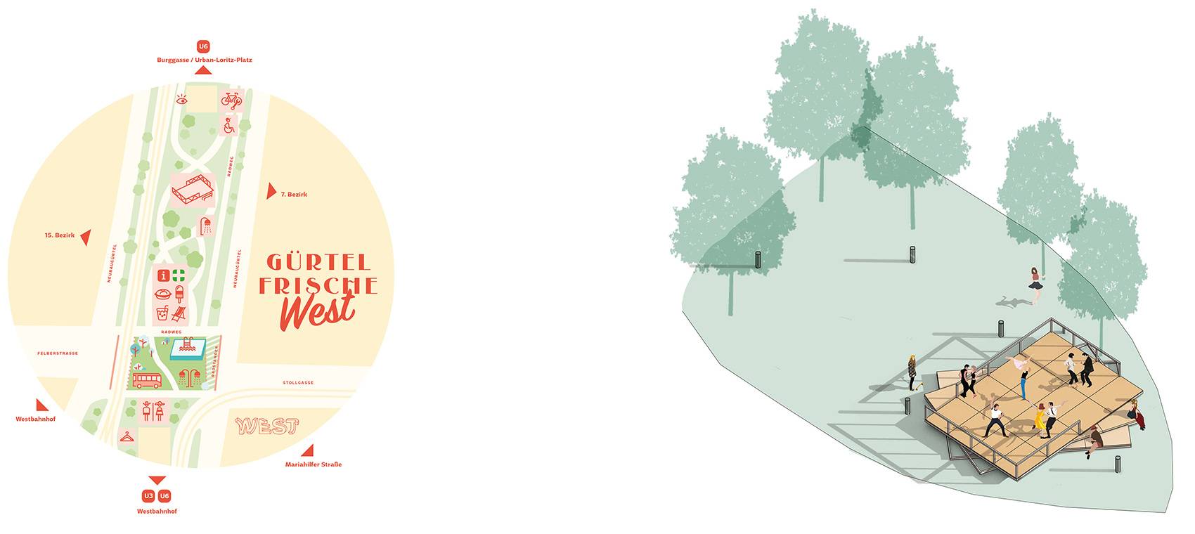 該項(xiàng)目是在維也納交通管理局的支持下,由維也納市政交通部、第15區(qū)和第7區(qū)政府部門(mén)與K?R公司合作發(fā)起;概念深化和統(tǒng)籌方為art:phalanx和Kultur & Urbanit?t;設(shè)計(jì)方為heri&salli建筑事務(wù)所。