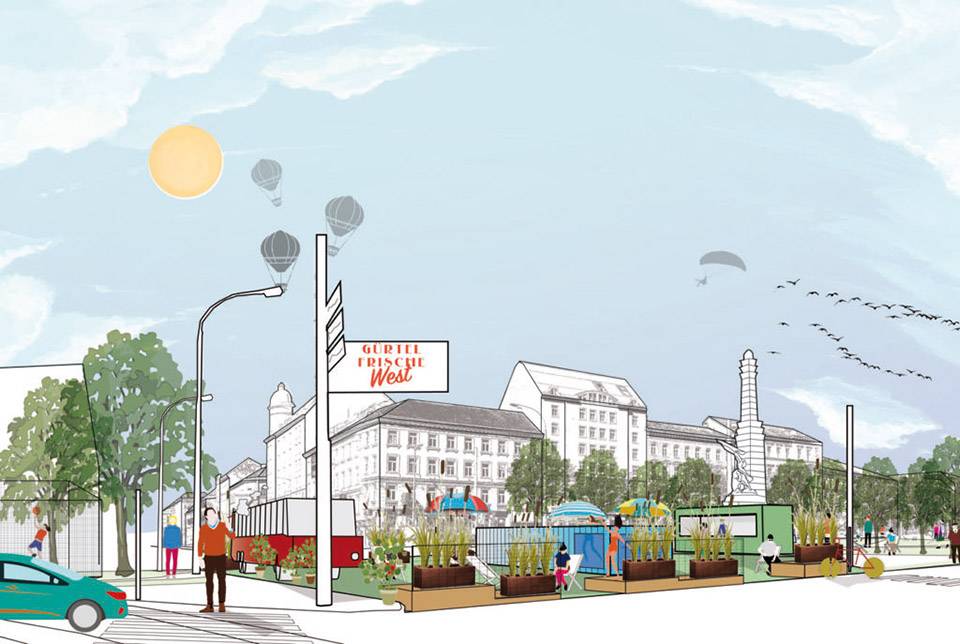最近,在維也納Gürtel環(huán)路沿線的第7區(qū)和第15區(qū)之間,一個(gè)新的臨時(shí)公共項(xiàng)目受到了人們的廣泛關(guān)注和歡迎。原先的七車道交匯口被改造成一個(gè)充滿活力的生活和休閑空間,為居民和游客帶來(lái)帶來(lái)絕佳的城市體驗(yàn)。