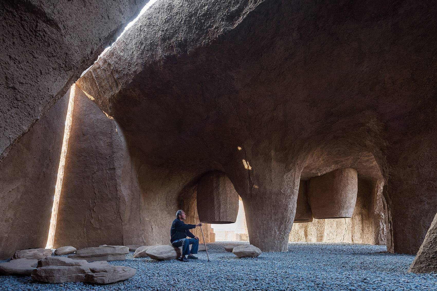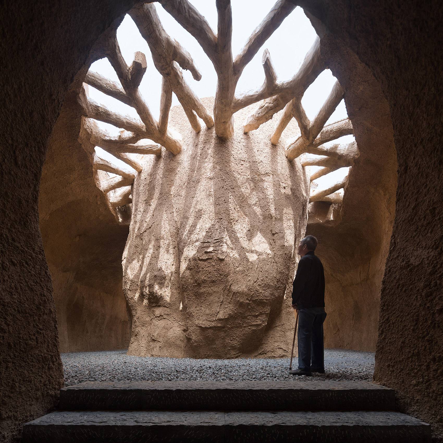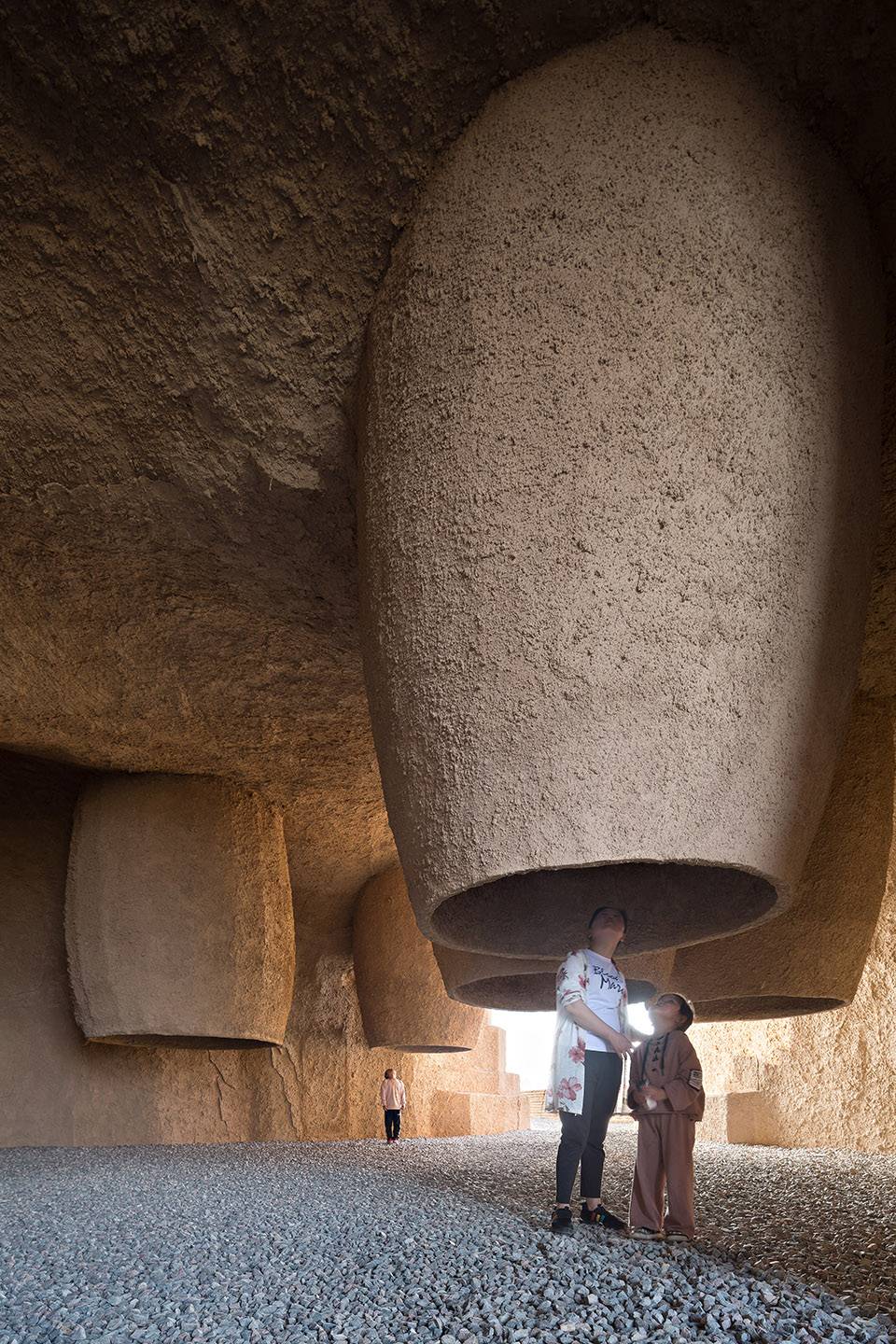 火使人類從露天進(jìn)入穴居,聲音也從呼喊變?yōu)榧?xì)語和絮語。以塤為原型設(shè)計(jì)聲音裝置,讓音腔打通洞穴內(nèi)外,聲場(chǎng)連接天空與大地,成為人們?cè)V說的場(chǎng)所與容器。