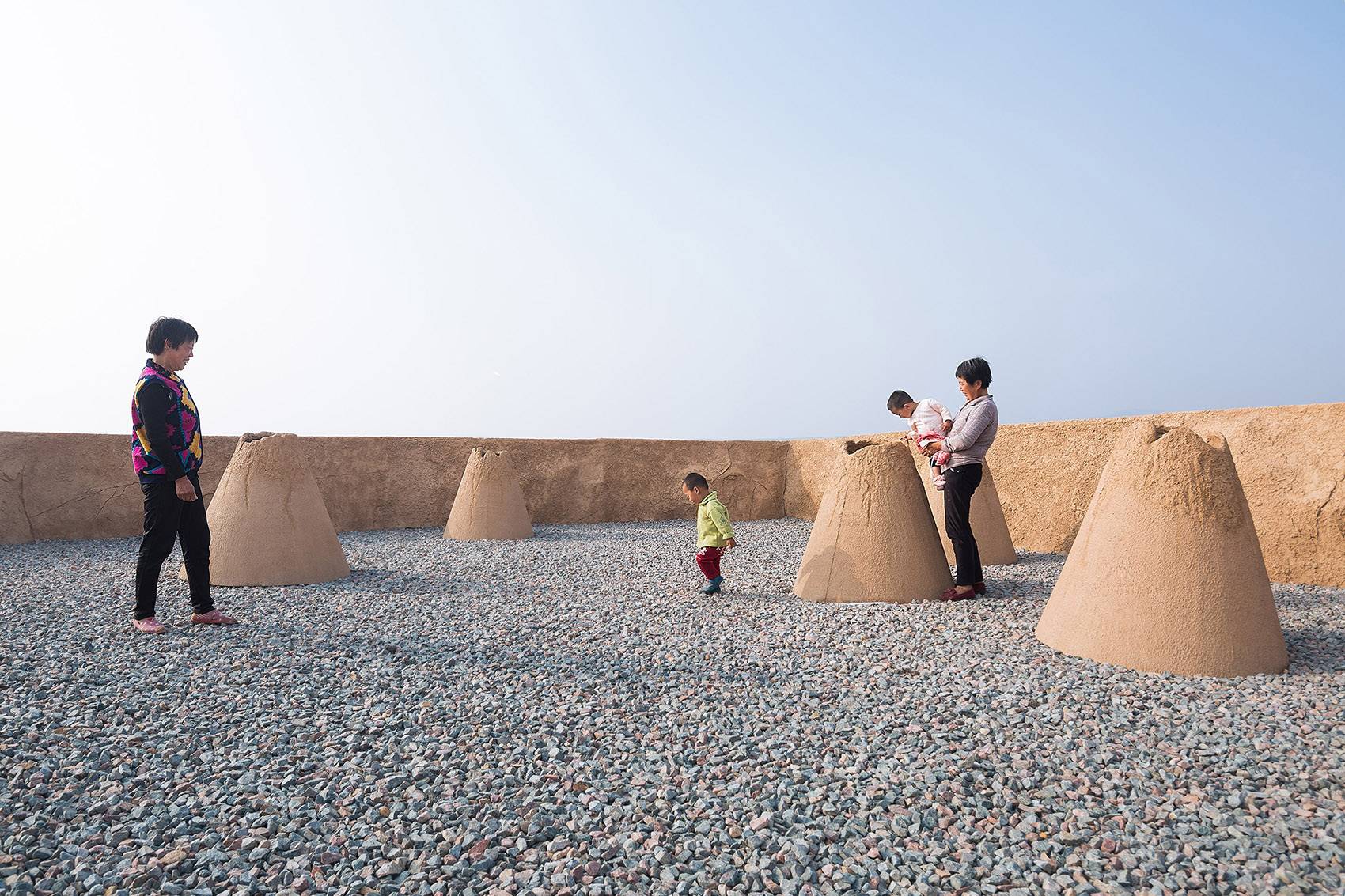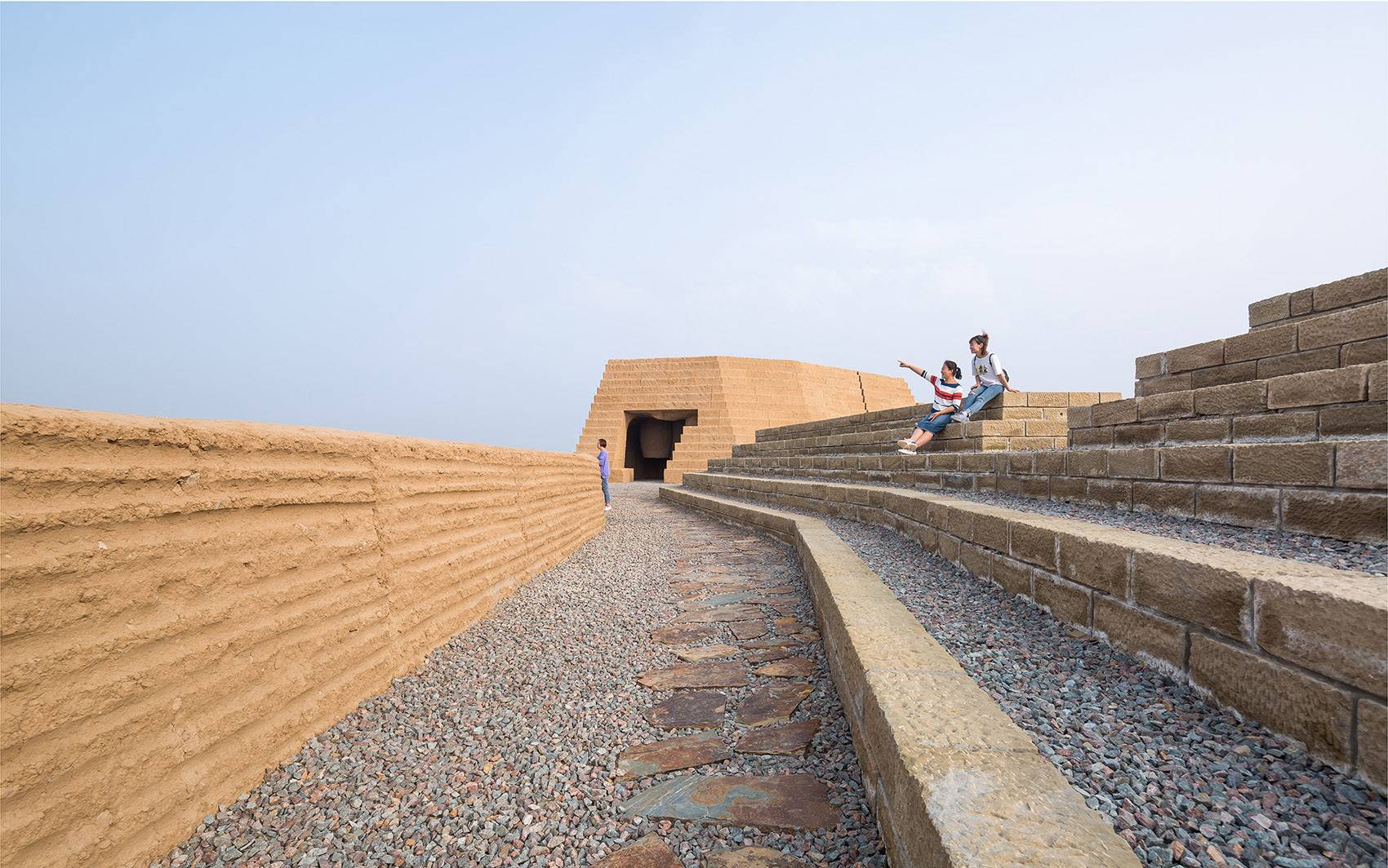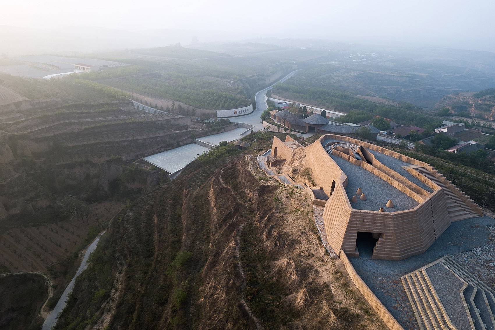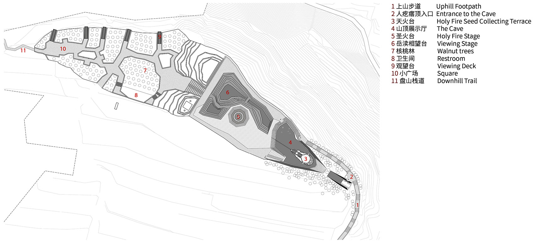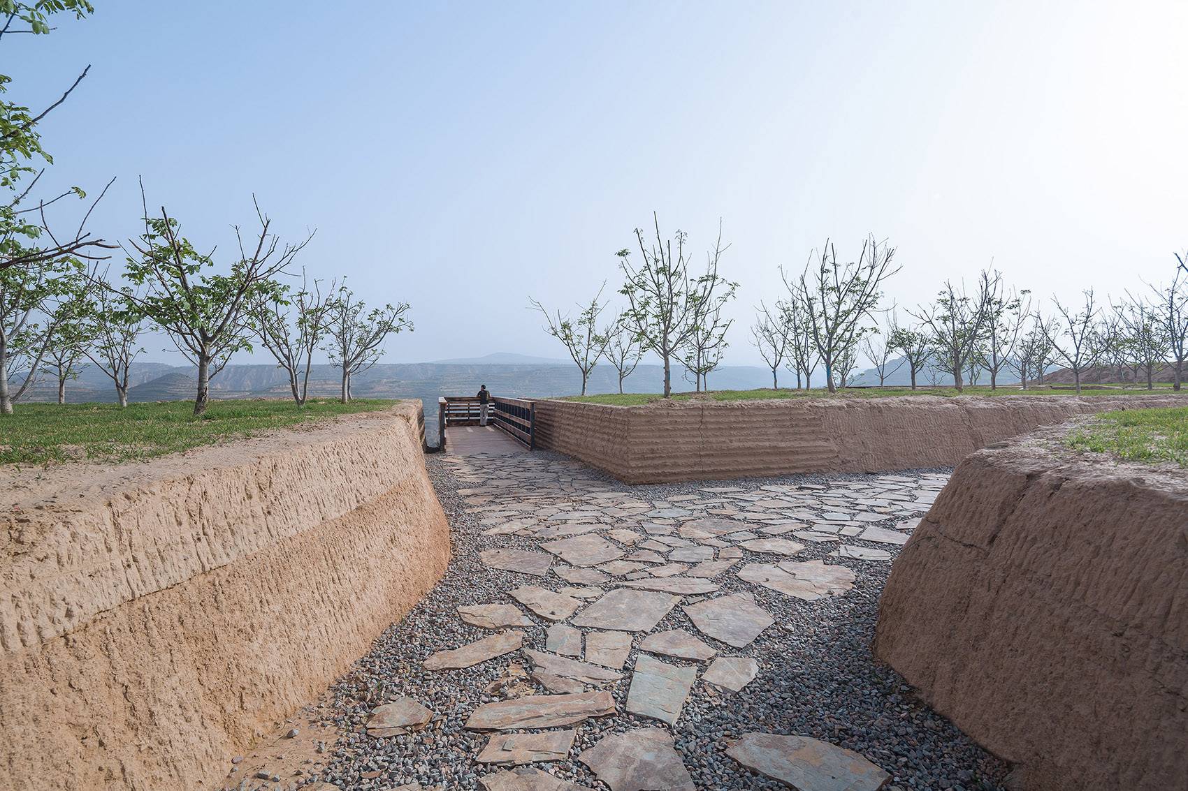 本工程還治理了西側(cè)在2016年的工程的建筑垃圾堆砌場(chǎng),用溝壑的形式最小限度地投入工程量,既恢復(fù)了自然景觀,又形成了一個(gè)迷宮般的路徑,象征著在人類在“火的馴服”史上文明的艱難旅程。這里將是未來的開放的露天博物館。北側(cè)巷道的端頭自然形成五個(gè)挑臺(tái),眺望壯觀的黃土高原,體會(huì)粗獷的考古場(chǎng)地,欣賞美麗的花椒樹林。