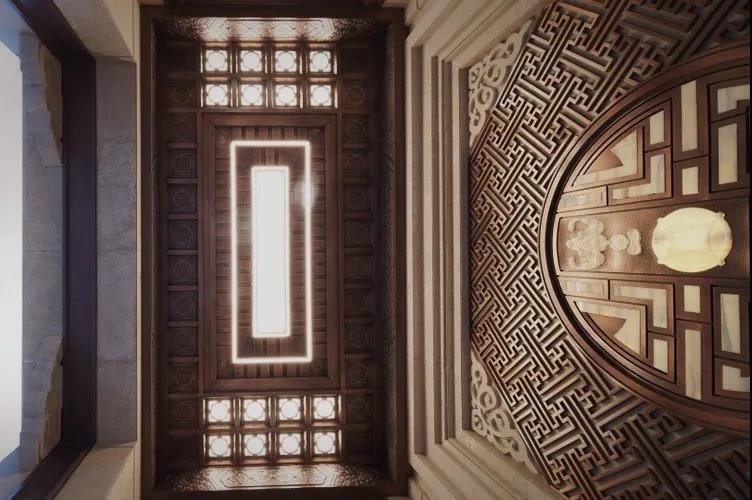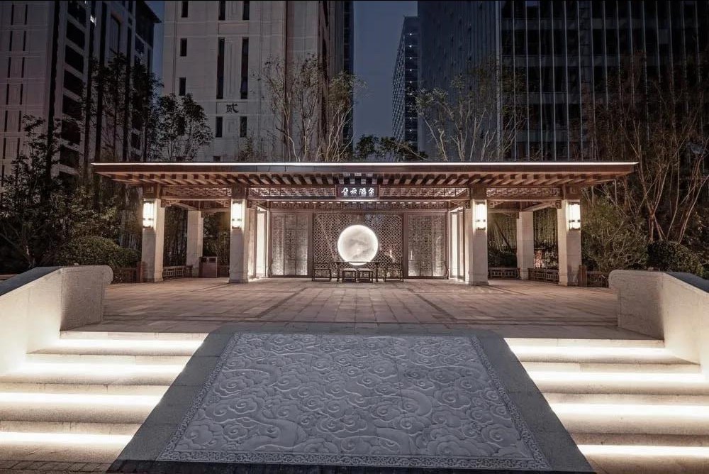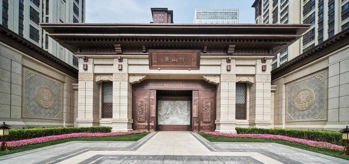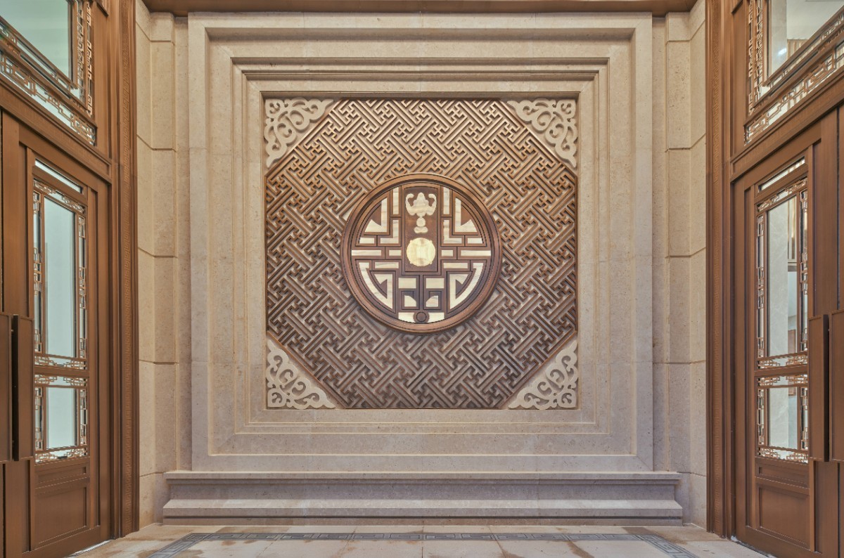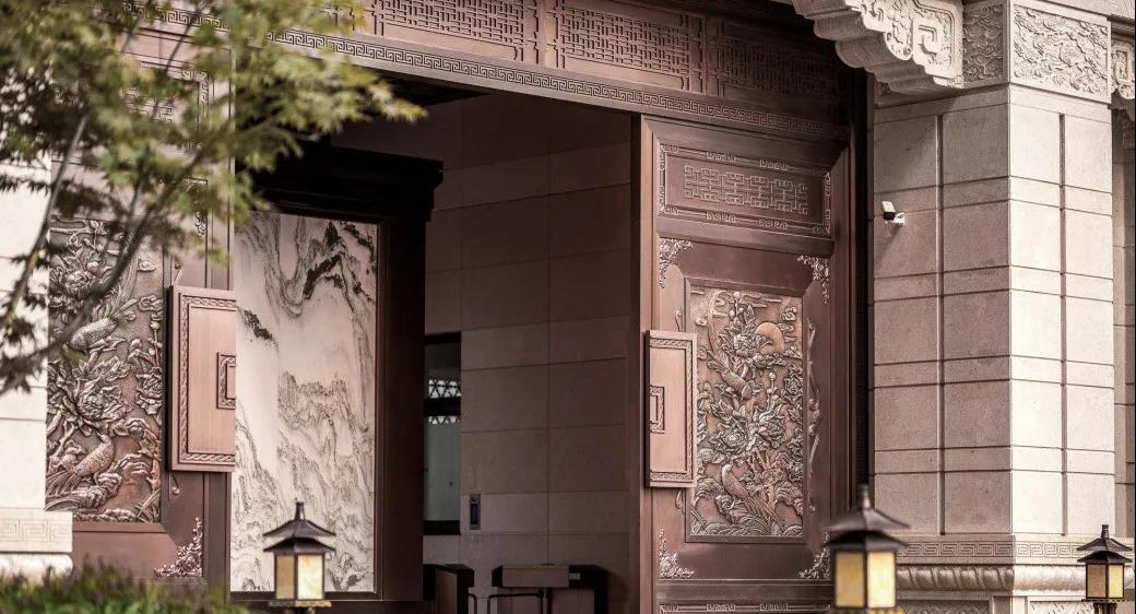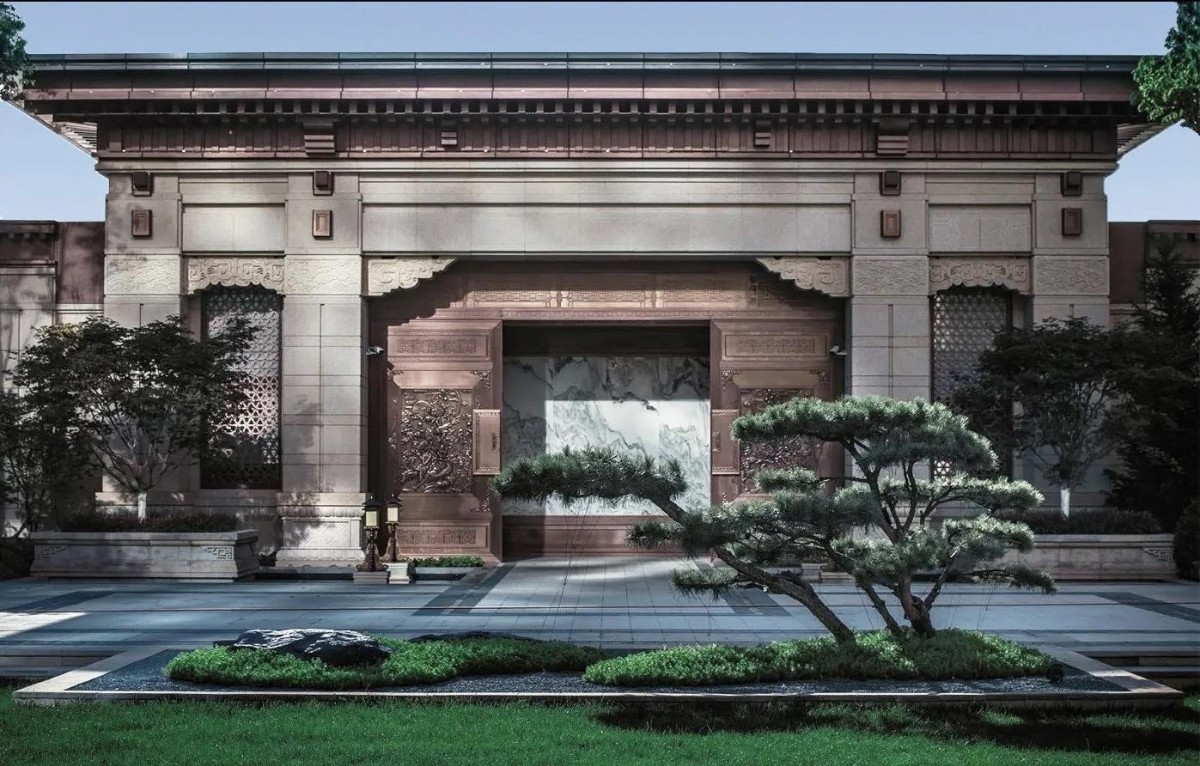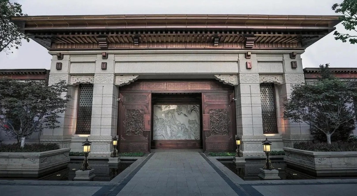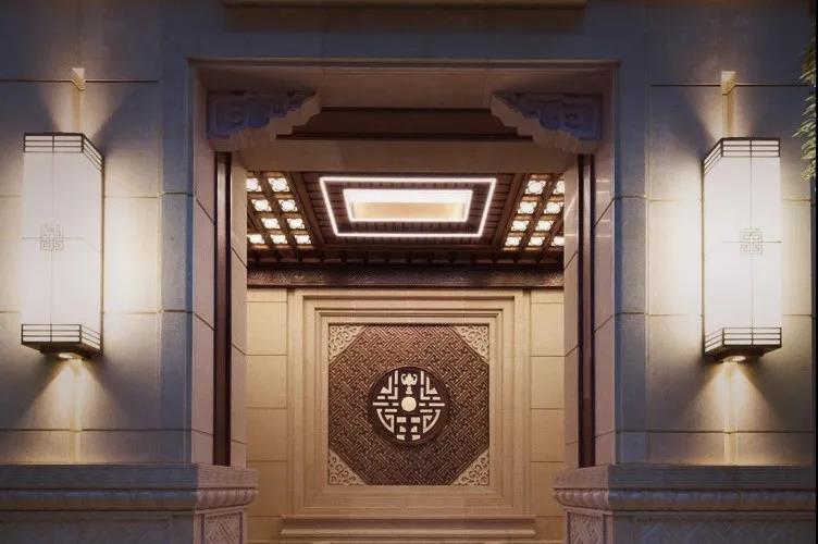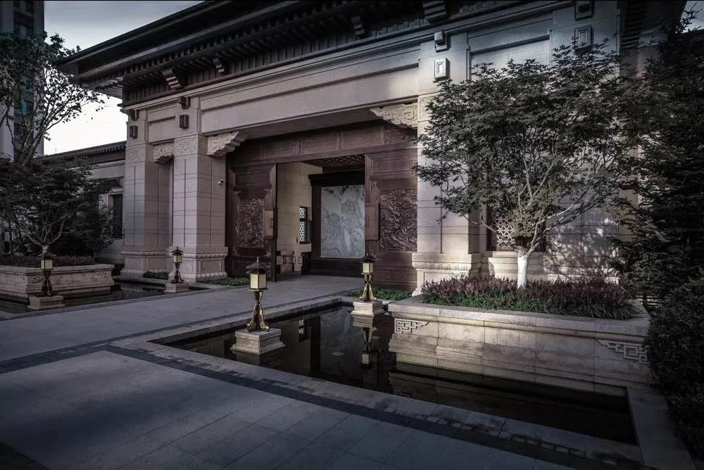 主入口充分提煉中式建筑經典元素,其布局遵循禮制,其建筑精雕細琢,再現府門氣質,盡顯禮制,營造歸家的儀式與尊貴。以細節(jié)的精心雕琢呈現精工品質,對中式傳統(tǒng)文化的延續(xù)詮釋藝術之美。