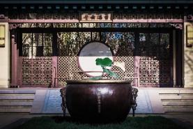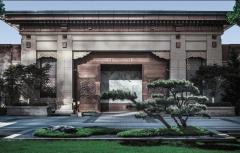 這里主要打造成中軸重要的景觀節(jié)點,通過高差的設計,讓景觀亭成為入口軸線上最高的觀賞點。景觀亭在細節(jié)和結構上融入了恭王府門樓形式和建筑的設計語言,在"新京派"府邸的基調上進行簡化。