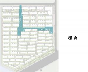 最終形成“兩園九境十二坊”的景觀規(guī)劃結構,通過恰當規(guī)模的鄰里尺度,給予居住者歸屬感和清晰的空間導向。連接東側和北側兩個出入口,形成“L”形的主要公共景觀生活軸,在線性的空間里創(chuàng)造如長卷般的連續(xù)畫面,同時利用空間收放形成九個駐留性節(jié)點,創(chuàng)造兼具游覽與交往功能的豐富場境。