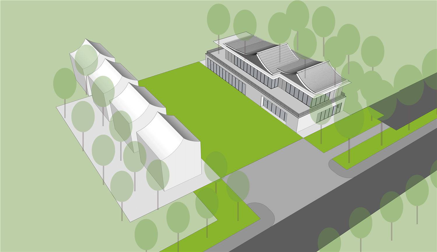 項目既以“園”命名,體現(xiàn)了景觀的價值和所承擔的期待,如何造一座當代園林,既承接場域原有的寧靜人文氣息,又契合當代審美和生活方式?