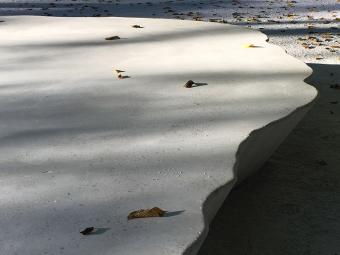 ▼刻有紀(jì)念性文字的混凝土“島”,上面栽種著表示緬懷的白花植物