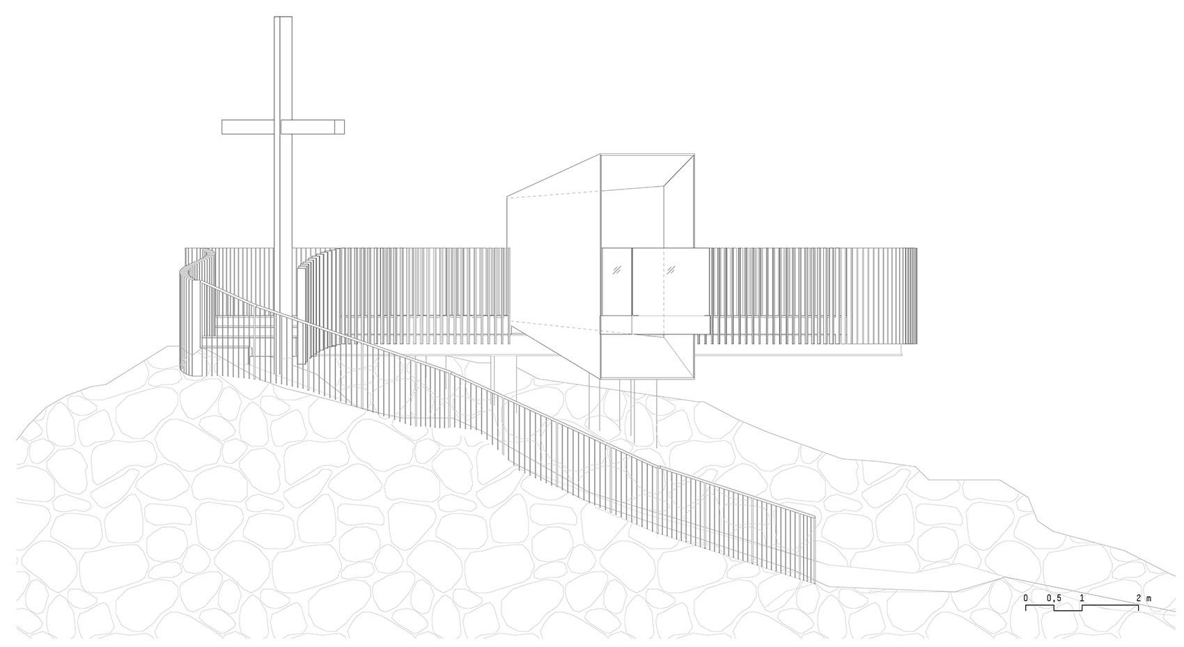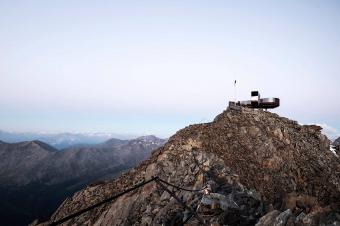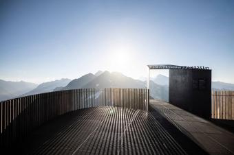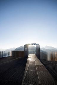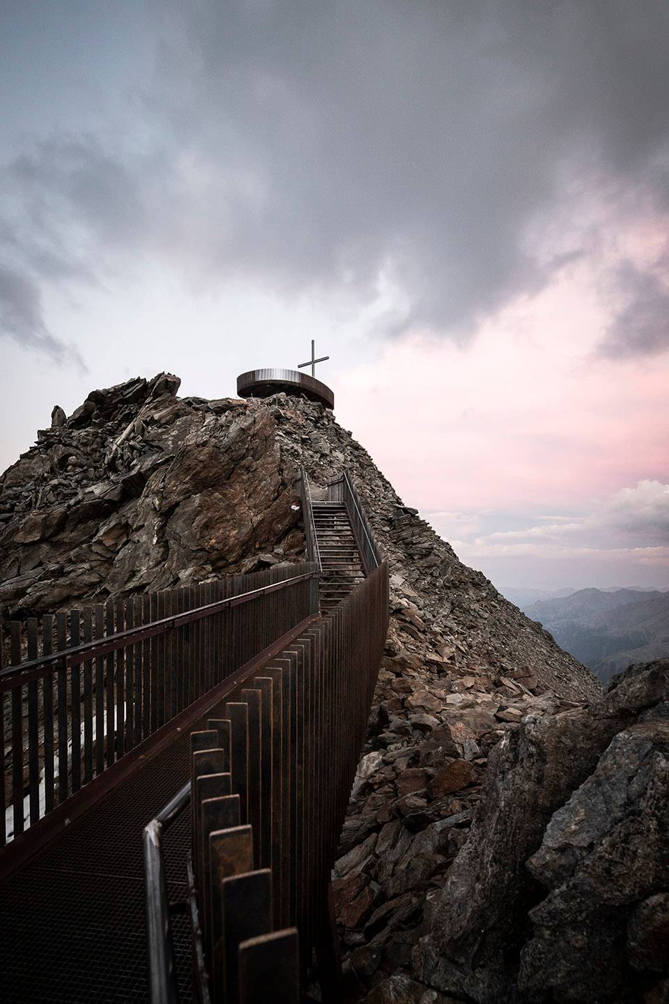 A viewing platform was developed based on a light structure made of Corten steel, giving a modern touch that also blends in with the landscape. The design incorporates the pre- existing summit cross, and the platform only touches the ground where there is a static necessity – creating a detached, almost floating construction which lets you become one with the mountains and breathe in the freedom.