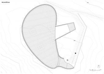 The platform follows the natural topography with a plateau grid placed on top of slender crossbeams, which are enveloped in vertical lamellas of Corten steel. The parapet-high, vertical elements trace these gentle curves in their sequence.