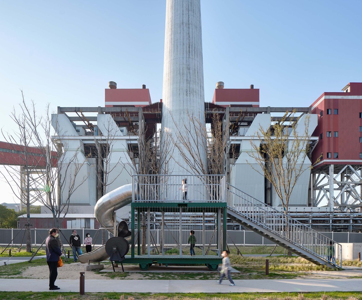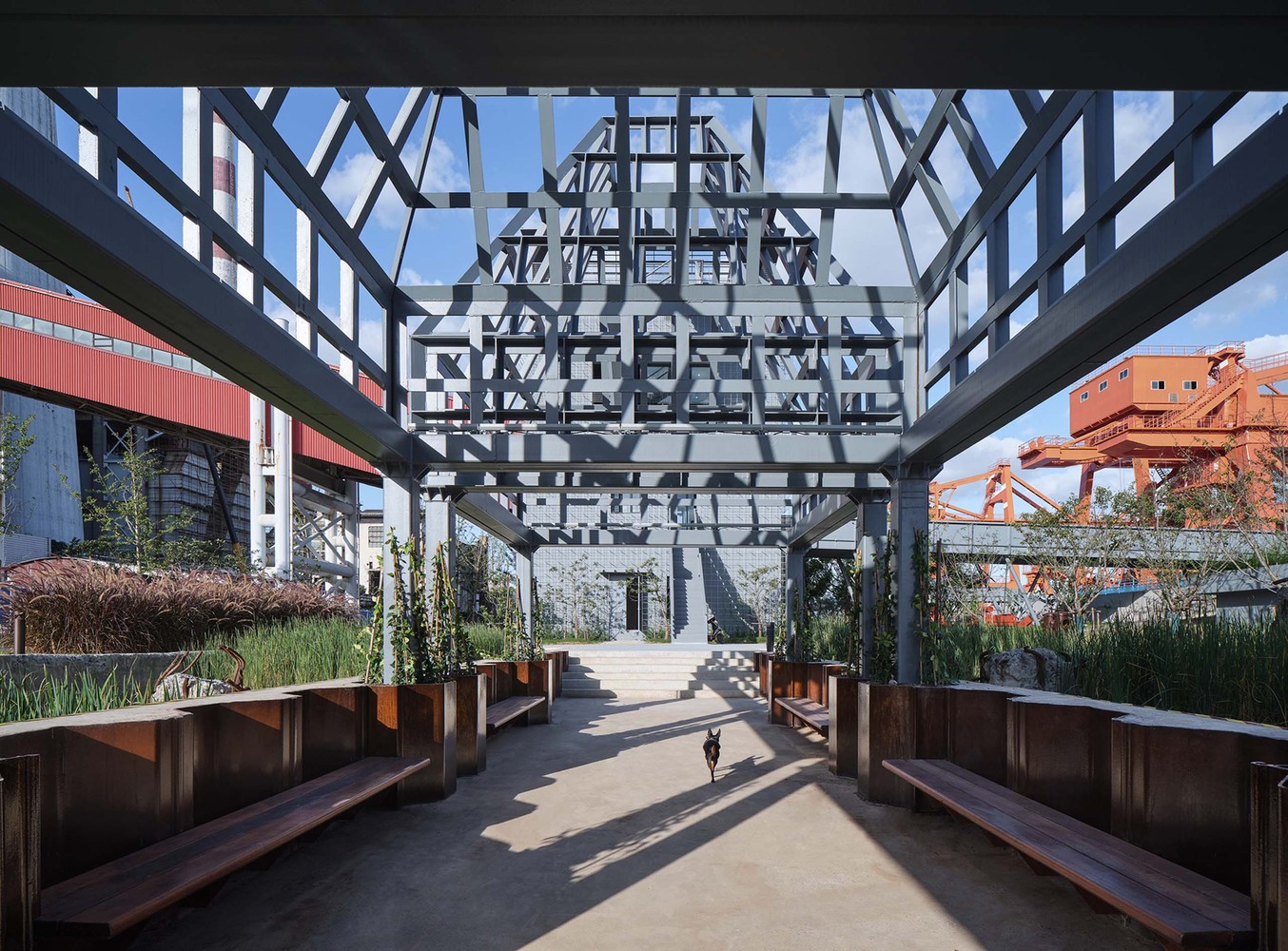 楊樹浦電廠濱水藝術(shù)空間前身為英商投資建于1913年的楊樹浦發(fā)電廠。這座曾經(jīng)的遠東第一火力發(fā)電廠雖然在上海的城市發(fā)展中扮演了重要的角色,但也因為大量燃煤而造成空氣污染,危及生態(tài)環(huán)境。2015年,伴隨著整個黃浦江公共空間工程計劃的啟動,電廠關(guān)停開始實施生態(tài)和藝術(shù)改造,從封閉的“閑人免入”生產(chǎn)岸線,向文化和生態(tài)共享的生活性濱水開放空間轉(zhuǎn)型,“還江于民”,修復燃煤造成的生態(tài)污染,塑造電廠的場所精神,嵌入城市律動的濱水公共空間。